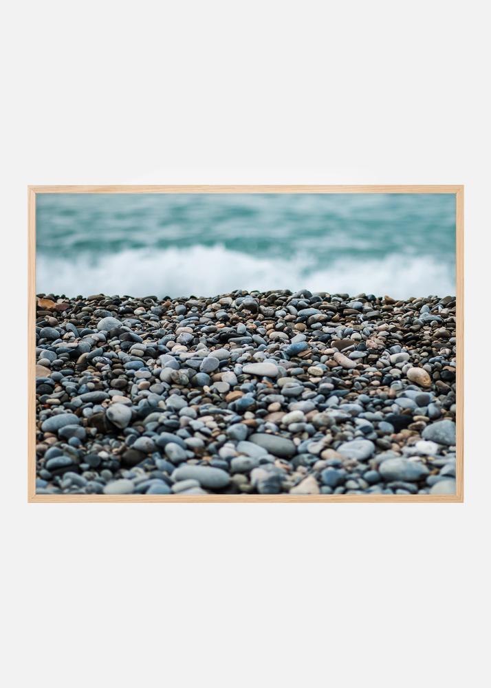 Hallgasd meg a tenger hullámainak zaját erről a poszterről, amelynek előterében egy gyönyörű kavicsos tengerpart látható. A rövid mélységélesség érdekes képet ad, ami vonzza a szemet. Találsz egy kerekített üvegdarabot a kövek között? A szürkéskék színskála jól mutat egy keskeny keretben, világos falon, lehetőleg tengeri kiegészítőkkel.
