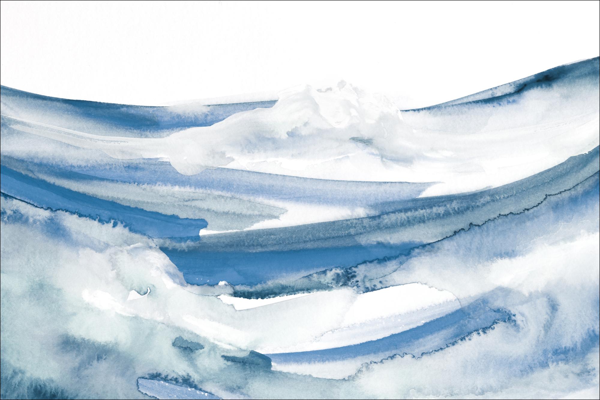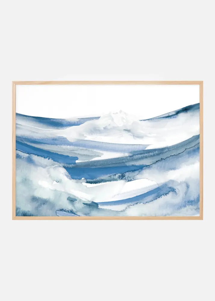 Egy fantasztikus világos poszter nagy ecsetvonásokkal kék és fehér színben. Ezek a drámai színárnyalatok a tenger hullámainak illúzióját keltik. A lágy akvarellszélek habot hoznak létre, és erős sebességérzetet adnak a műnek, amikor a szín örvénylik. Adj a falaknak egy mozgás érzetét ezzel az áramló alkotással.