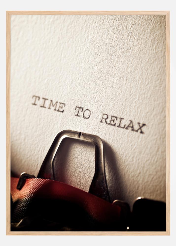 Egy szövegposzter "Time to relax" üzenettel, amelyet egy régi írógépen írtak le a klasszikus régi betűtípusával. Egy mutatós és stílusos poszter, kellemes retroérzéssel. A legtöbb otthonba és berendezési stílushoz illik.