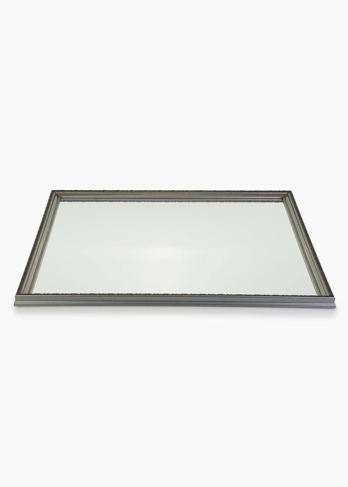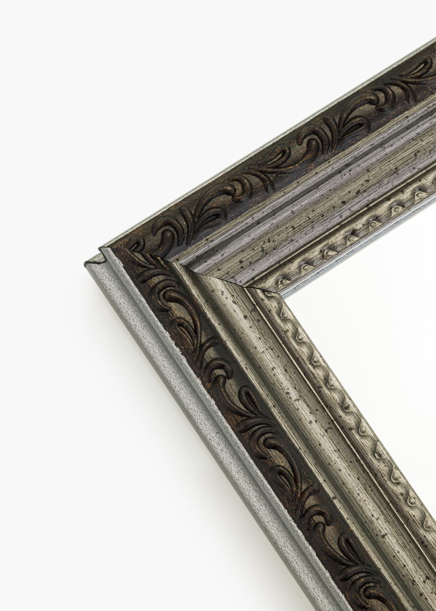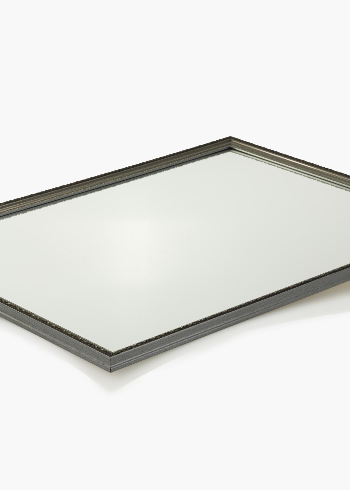 Ez egy falitükör elegáns ezüst árnyalatban, amelyet fekete keret hangsúlyoz ki. A tükör elegáns színárnyalatát tökéletesen kiegészíti a díszített profil, amelynek mintája segít egy nagyon kifinomult egység megalkotásában. A keret 25 mm széles és kompozit anyagból készült.