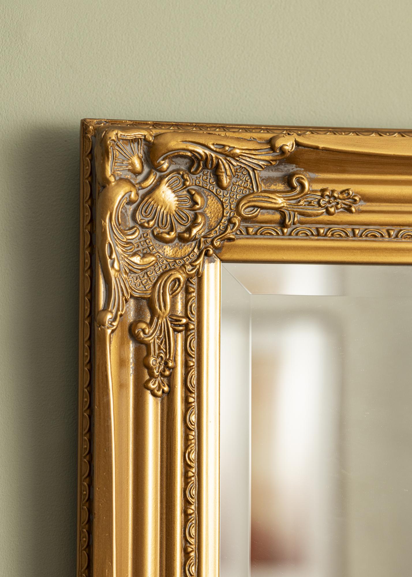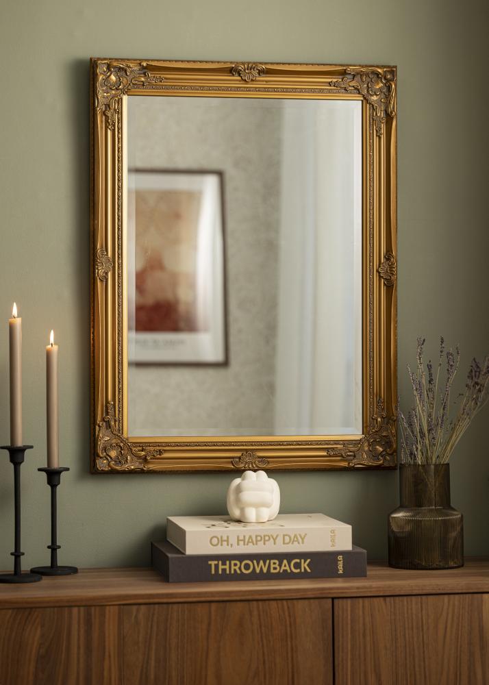 A Antique Guld tükör egy fali tükör, hagyományos formátummal és formával. Fa kerete van, amely gipszből öntött és a keretre helyezett, gyönyörű klasszikus dekorációval készült. Ez a keret a tükröt gyönyörű díszítéssé teszi, amely vonzza a tekintetet.