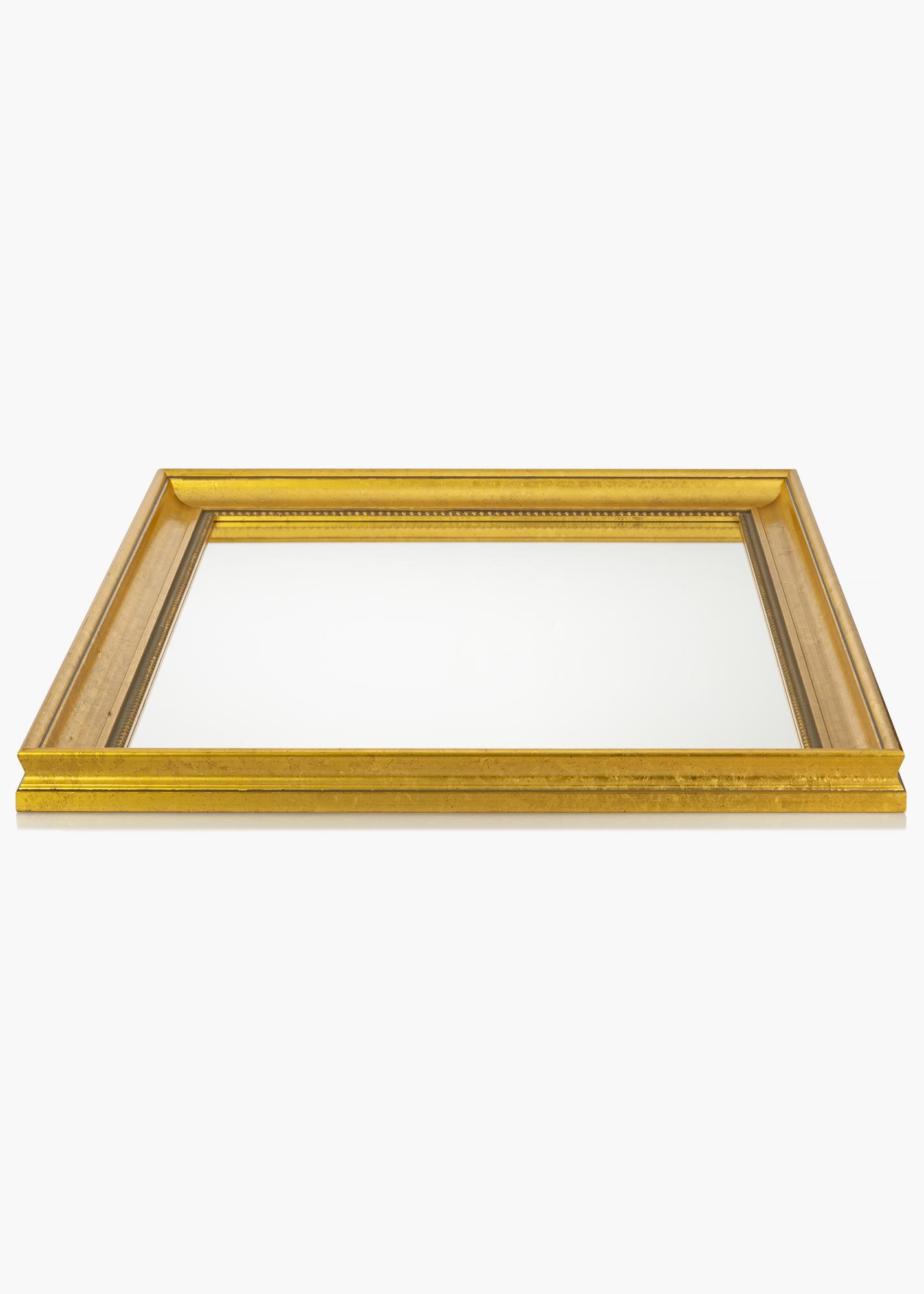 Szerezzen be egy elegáns tükröt, és tegye a folyosón, a nappaliban vagy a fürdőszobában az enteriőrt még fényűzőbbé. Ez a stílusos tükör többféle méretben kapható, így könnyedén találhat egyet, amely pontosan megfelel az ön céljainak. A tükörkeret klasszikus kialakítású, széles kerettel és egy diszkrét gyöngymintával közel az üveghez. A fa fenntartható erdőgazdálkodásból származik, és gyönyörű aranyszínben van festve.