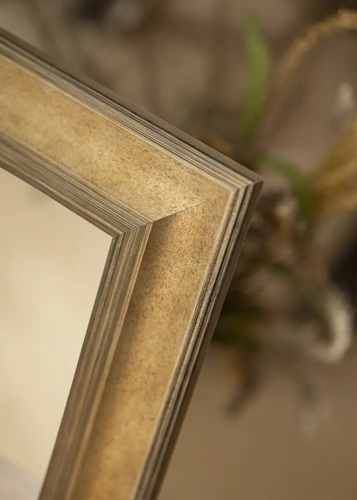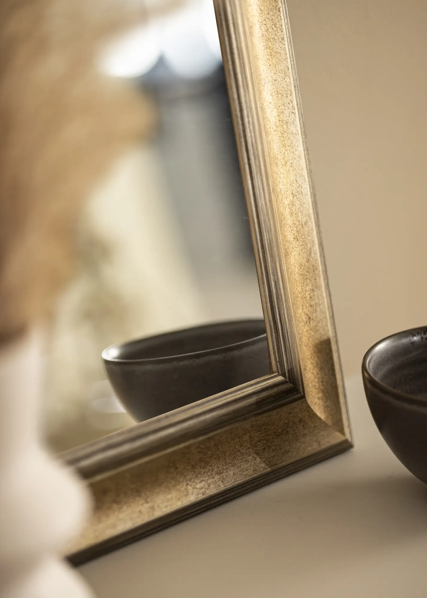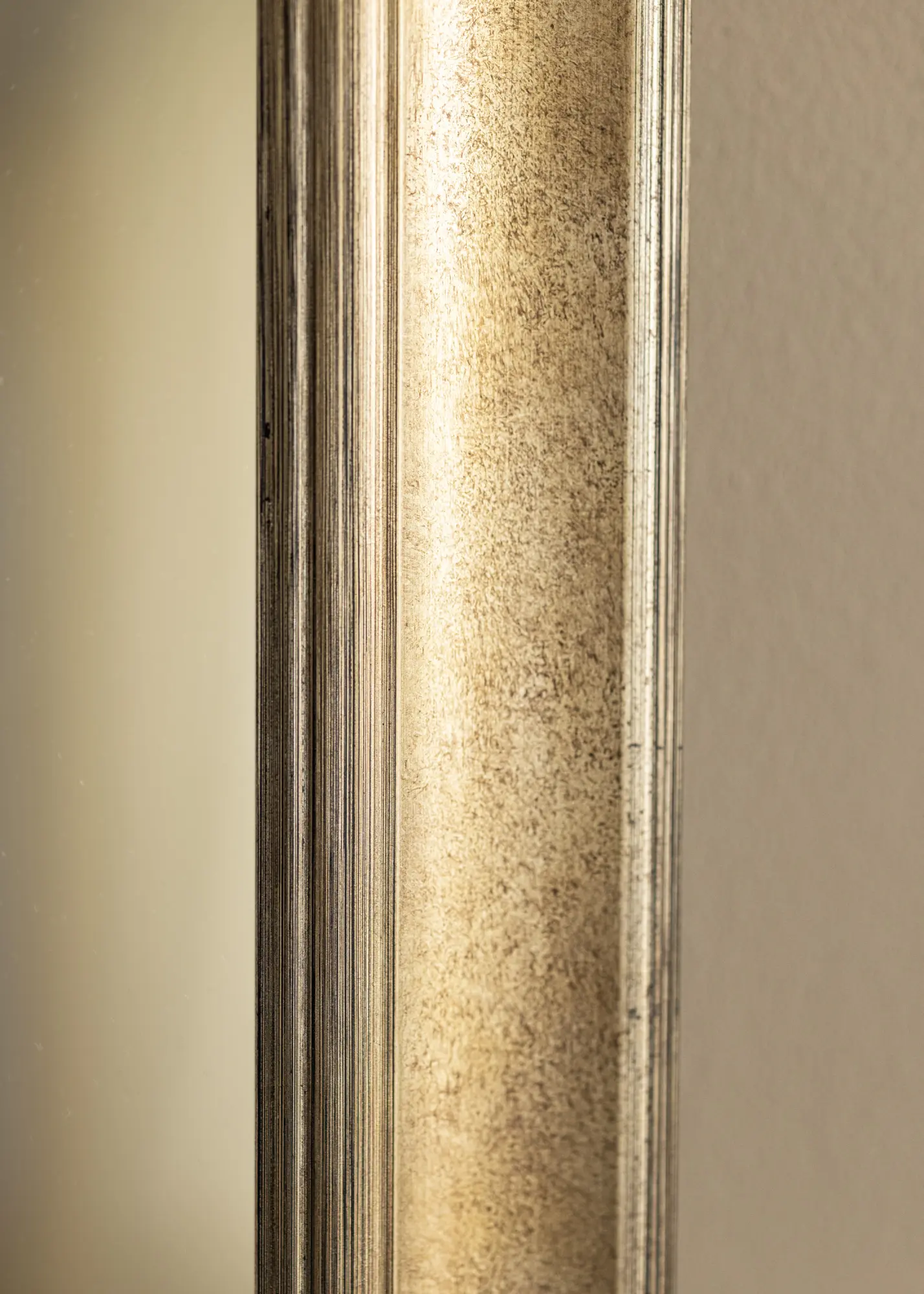 A tükrön lévő sötét ezüst tónus klasszikus és időtlen érzést ad, amely megkönnyíti a különféle belső stílusokkal való illesztést. A kefélt felület finom színváltozásokkal rendelkezik, amelyek kiemelik mind a mélységet, mind a struktúrát, egyedülálló karaktert kölcsönözve a tükörnek. A vékony, vonalas dekorációk a szélek mentén további elegancia és kifinomultság dimenzióját adják hozzá.