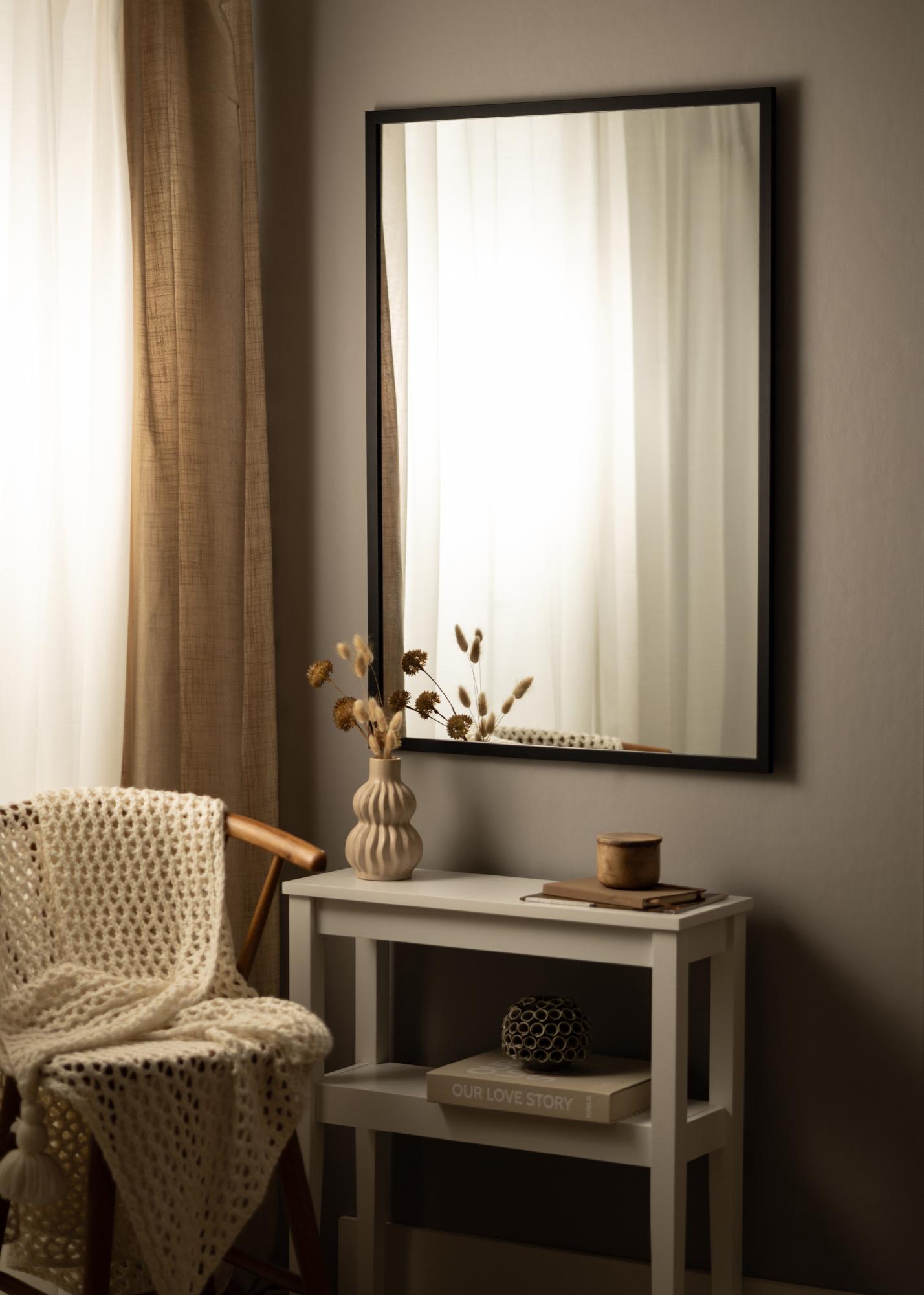A Black Wood egy kiváló választás számodra, ha letisztult falitükröt keresel egyszerű fekete kerettel. A tükröt festett ayos fából készítették, és színtelen tükörüveggel látták el. A 22 mm széles keret hagyományos, négyszögletes profilú, amely lehetővé teszi, hogy a tükröző felület kerüljön a középpontba.