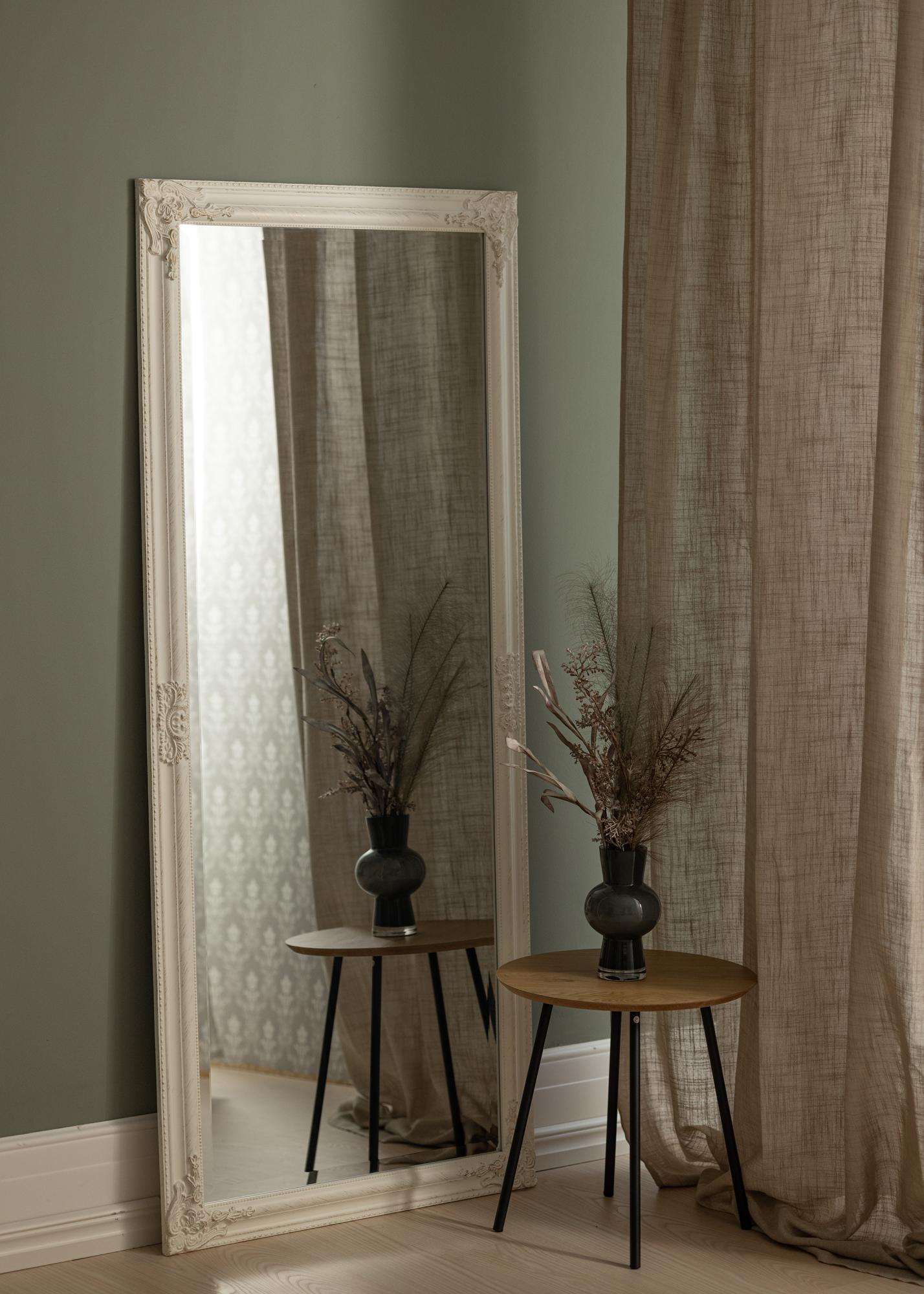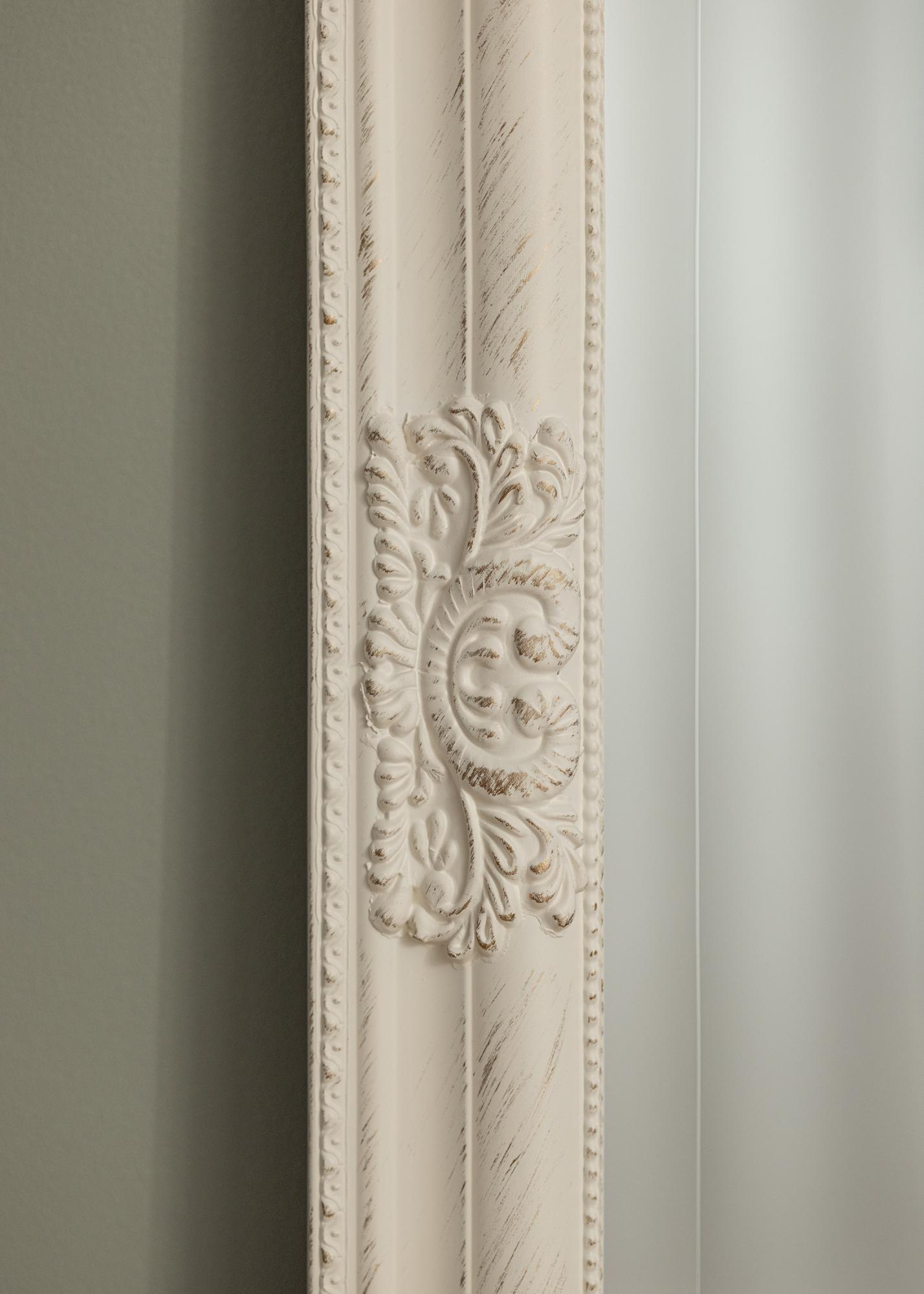 Fedezze fel a tükör eleganciáját az elegáns téglalap alakú tükrünkkel, amely a klasszikus báj és a modern egyszerűség tökéletes kombinációja. A 70x160 cm-es nagy méretek révén ez a tükör praktikus és dekoratív funkciót kínál otthonában. A fehér keret gazdagon díszített részletekkel díszített, amelyek a régi időkre emlékeztetnek, miközben tiszta formája aktuálissá teszi a dizájnt és könnyen illeszthető a többi berendezéshez.