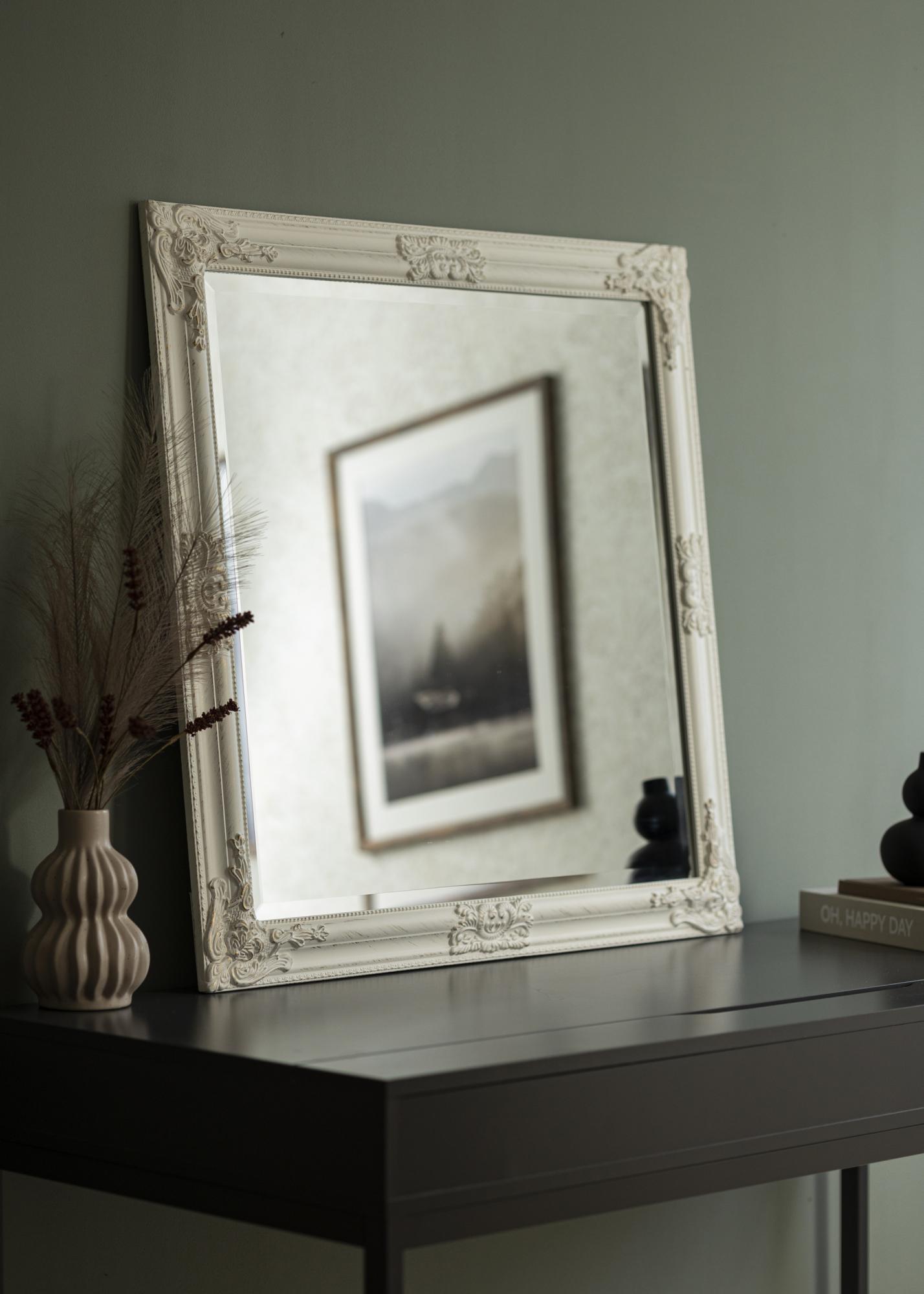 Fedezze fel a 80x80 cm-es elegáns négyzet alakú tükröt, amely tökéletes méretű ahhoz, hogy otthonában egyszerre legyen funkcionális és dekoratív. Ez a tükör négyzet alakú, amely szimmetriát és kiegyensúlyozott érzést nyújt, így bármely szoba szembetűnő eleme lesz. A fehér keret gazdagon díszített klasszikus ihletésű részletekkel, ami időtlen eleganciát és bájt kölcsönöz neki.