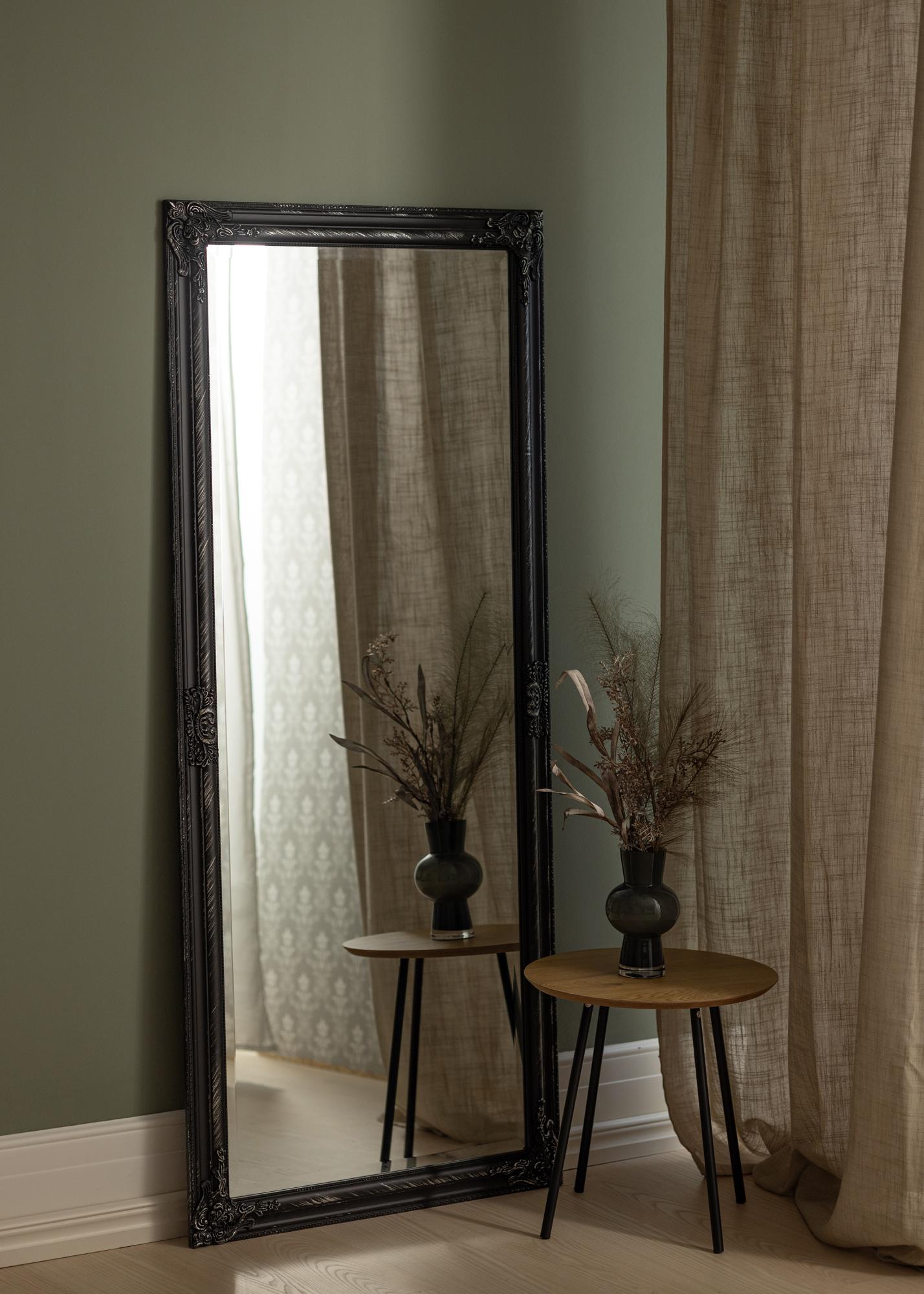 Fedezze fel az elegáns és kifinomult dizájnt a szabadon álló tükrünkkel, amely tökéletesen 70x160 cm méretű, hogy teljes tükröződést biztosítson. Ez a tükör egy álló, téglalap alakú formát mutat be, amely kiegészíti mind a modern, mind a hagyományos belsőépítészeti stílusokat. A fekete keret gondosan kialakított részletekkel rendelkezik, ami minden helyiségnek luxus érzést ad.