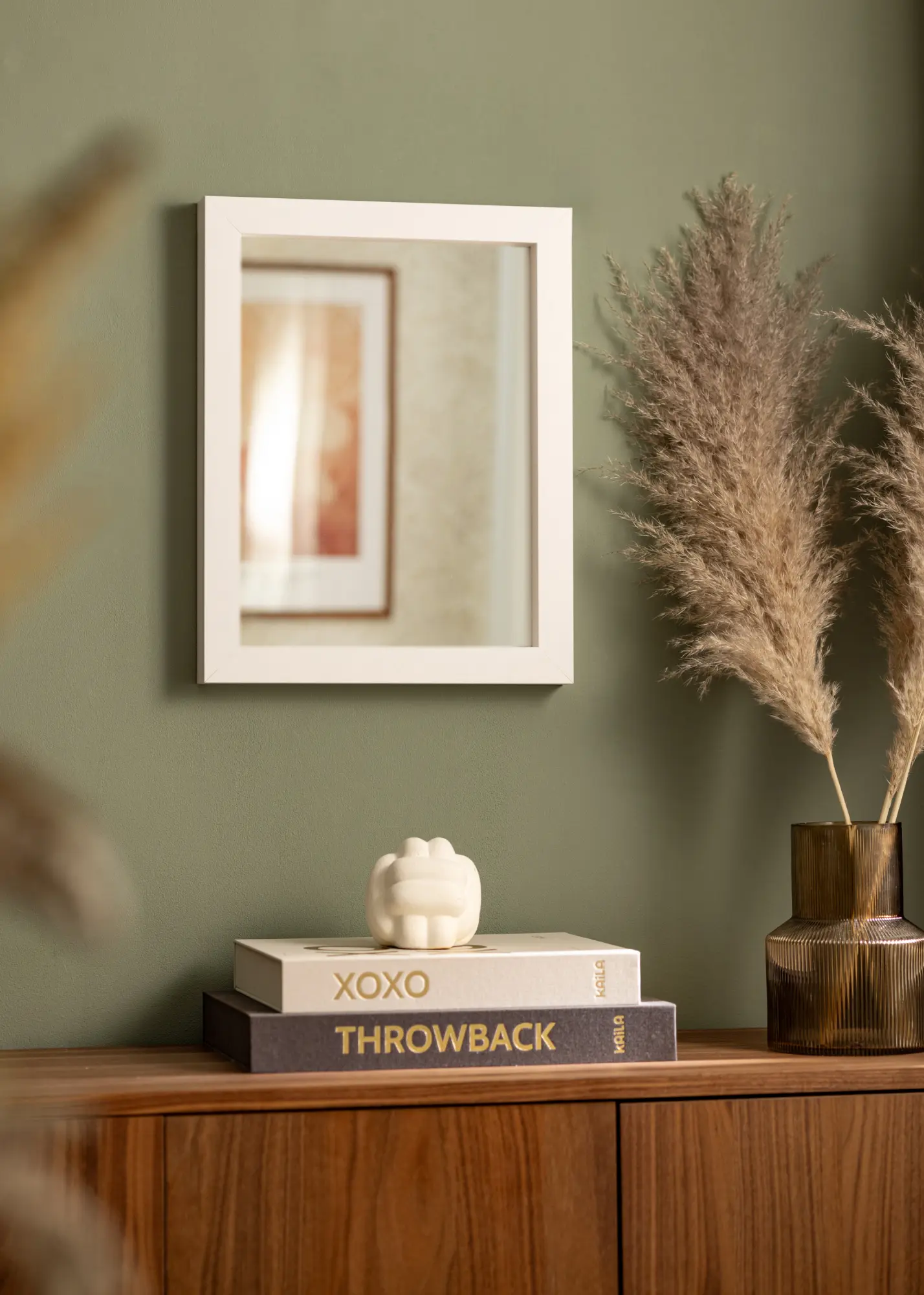 Finnországban gyártott fakeret, amely közvetlenül a fára festve van fehérre, hogy még hitelesebb faérzetet nyújtson. A "Boxholm Vit" keret mélysége 43 mm, így a tükör távolabb helyezkedik el a faltól, ami remek 3D hatást kelt.
