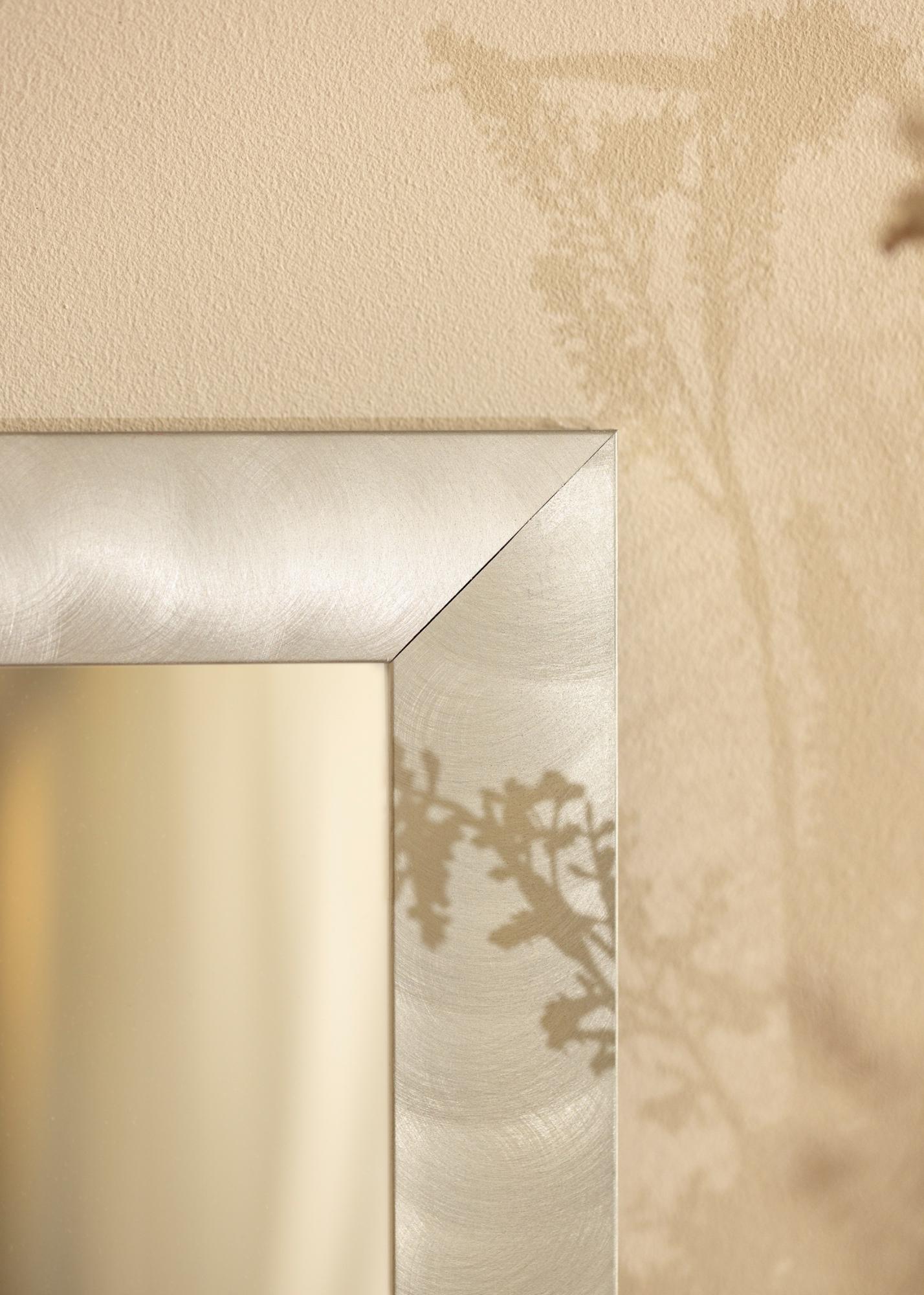 Diszkrét tükör sima széles kerettel, amely Németországban készült magas minőségű alumíniumból. A keret világos rozsdamentes acél kinézettel rendelkezik, és tiszta dizájnjával jól illeszkedik mind a minimalista, mind a vidéki otthonokba, valamint minden szobatípushoz passzol. Akassza a tükröt egy olyan szobába, ahol ezüst vagy fekete keretes képek vannak, és kombinálja beltéri kiegészítőkkel a szürke árnyalataiban, hogy harmonizálja a berendezést.