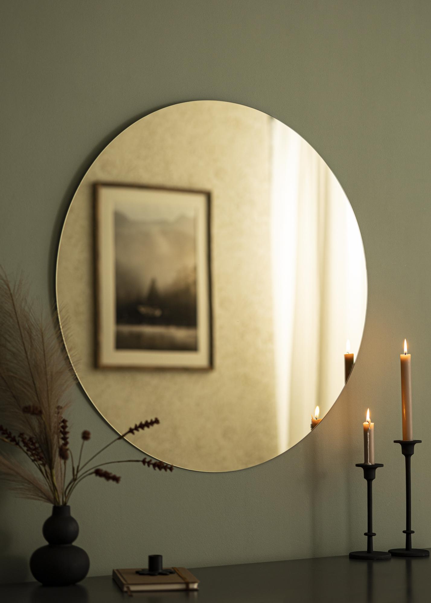 A pezsgő árnyalat a luxus színe, tehát ha exkluzív tükröt keresel, ez a megfelelő választás. Ez a kerek fali tükör vékony tükörüvegből készült, és elegáns, keret nélküli kialakítással rendelkezik. A tükör átmérője 80 cm.