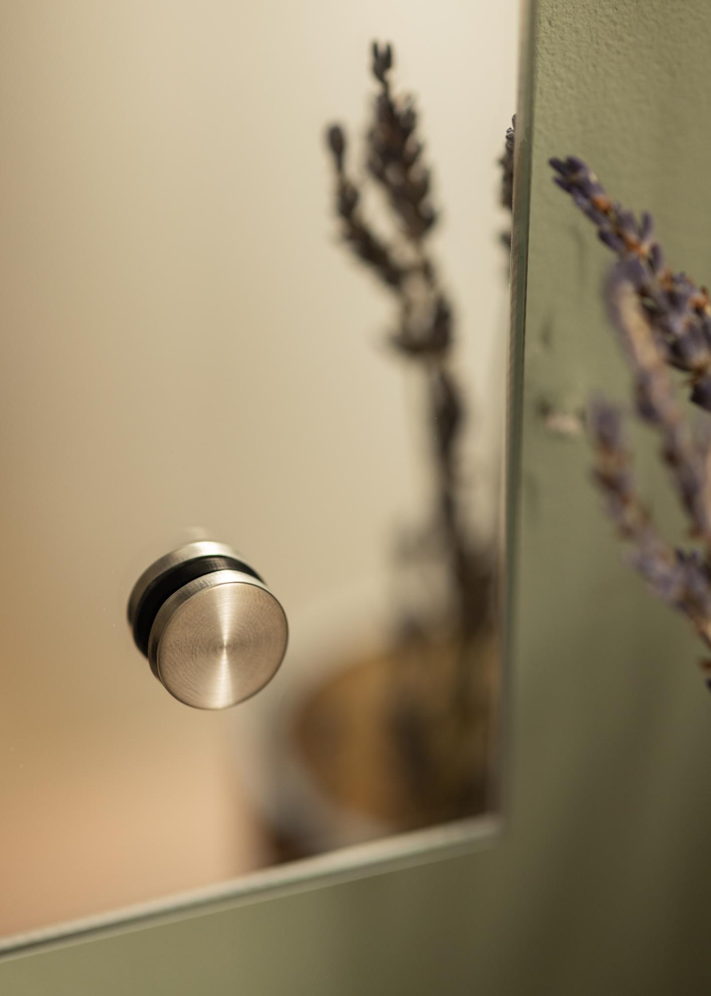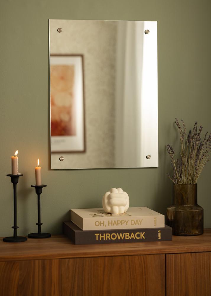 A tükör minden sarkában látható csavarhelyek ipari érzést kölcsönöznek, amely kiegészíti az egyszerű dizájnt. Ez a funkcionális és esztétikailag vonzó tükör kiváló választás annak, aki sokoldalú, karakteres belsőépítészeti elemet keres. Válaszd ki magad, melyik oldal legyen fent vagy lent, és adj személyes jelleget otthonodnak.