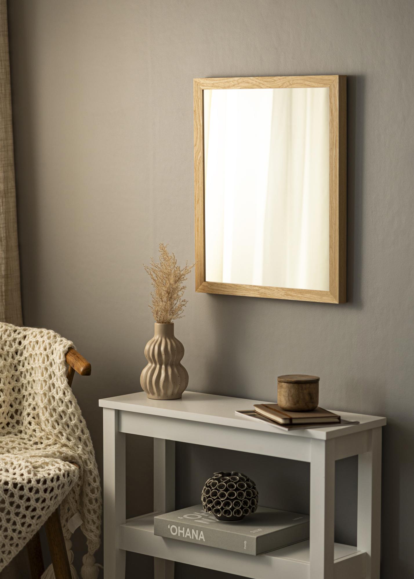 Ez a tükör elegáns bézs színben kapható, amely a legtöbb belsőépítészeti stílusba beilleszthető. A keret 28 mm széles, ami letisztult és modern megjelenést kölcsönöz a tükörnek. A 33 mm mélységével a tükör robusztus felépítésű, ami tartóssá és stabillá teszi. Fenyőből készült, meleg és természetes fa felületet kínál, amely hívogató hangulatot teremt bármely helyiségben, ahol elhelyezik.