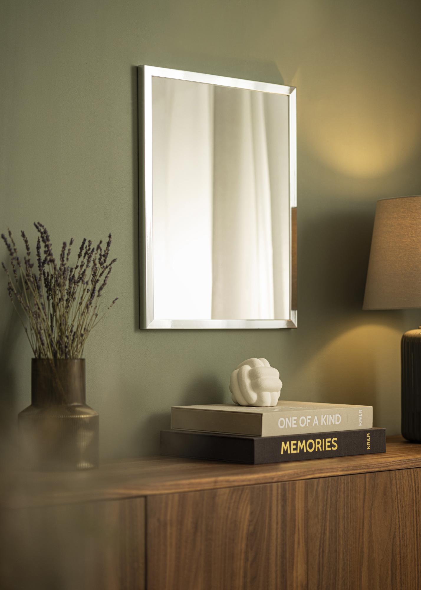 A Devon ezüst tükör kerete 20 mm széles és 20 mm mély, ami diszkrét, mégis markáns keretezést ad neki. Ayofa fából készült, így ez a tükör a tartósságot esztétikummal ötvözi. Simogató fémes felülete látványos ragyogást teremt a fény szögétől függően, ami élővé teszi lakberendezésének ezen elemét.