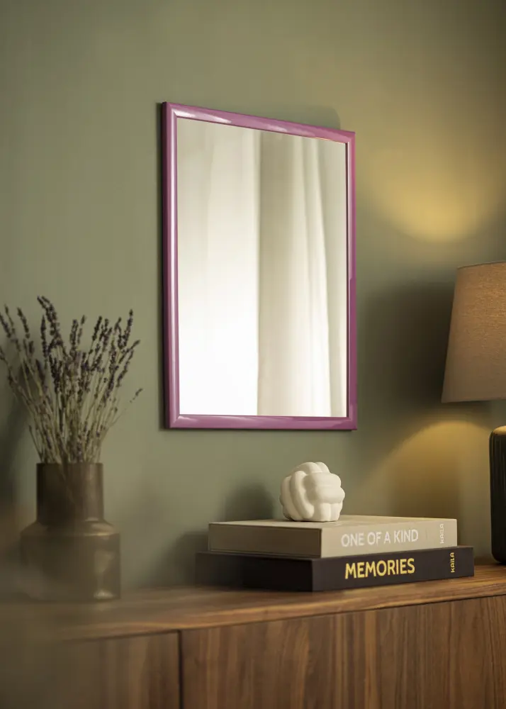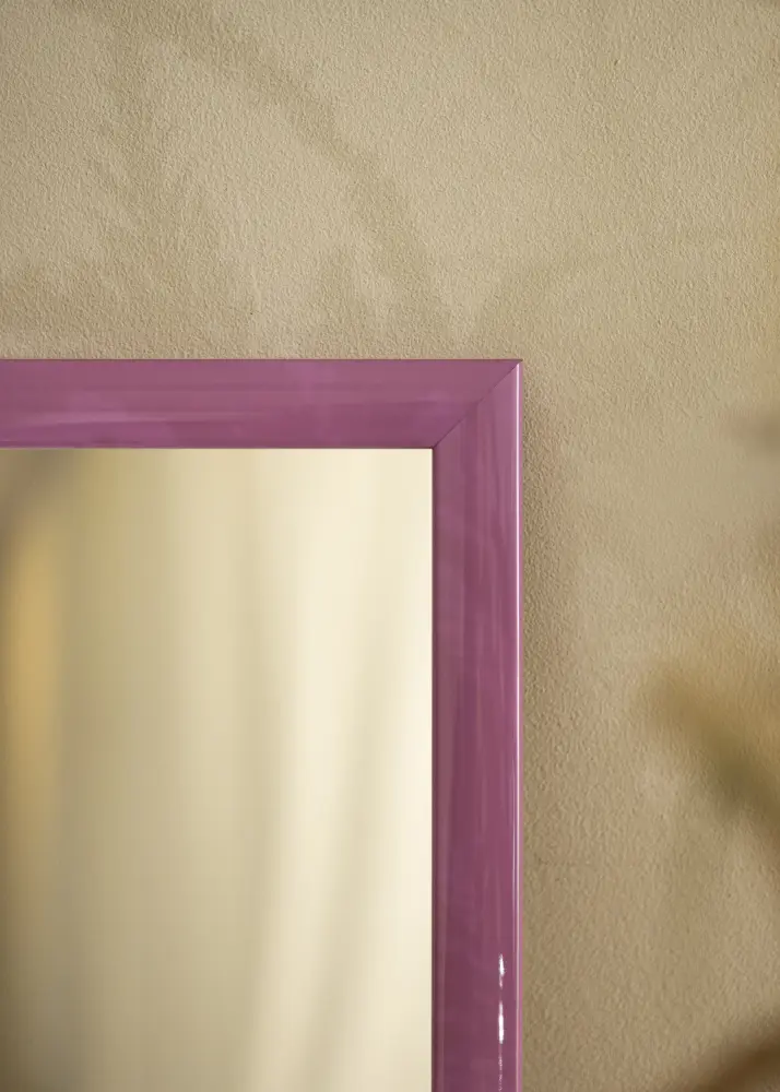 A tükör magasfényű felülete segít felerősíteni a fényt a szobában, ami különösen előnyös lehet kisebb vagy sötétebb helyeken. Ezenkívül a rózsaszín-lila szín finom színérintést ad, amely kiegészítheti vagy kontrasztálhat más elemekkel az otthonában.