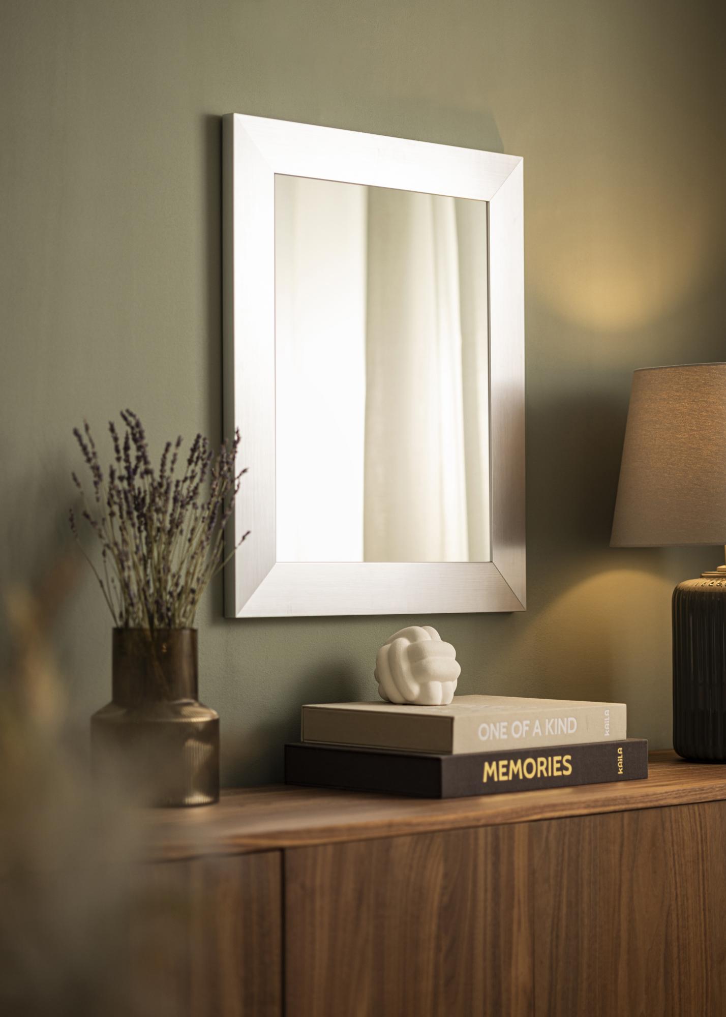 A Dover Slät Silver tükör egy elegáns és letisztult tükör, amelyet nagy gondossággal készítünk. Ez a tükör tökéletes azok számára, akik modern berendezési elemet keresnek egy kis luxusérzéssel. Széles, kefélt ezüst felületű keretével kifinomult benyomást kelt, és kiválóan illik mind modern, mind klasszikus környezetbe.
