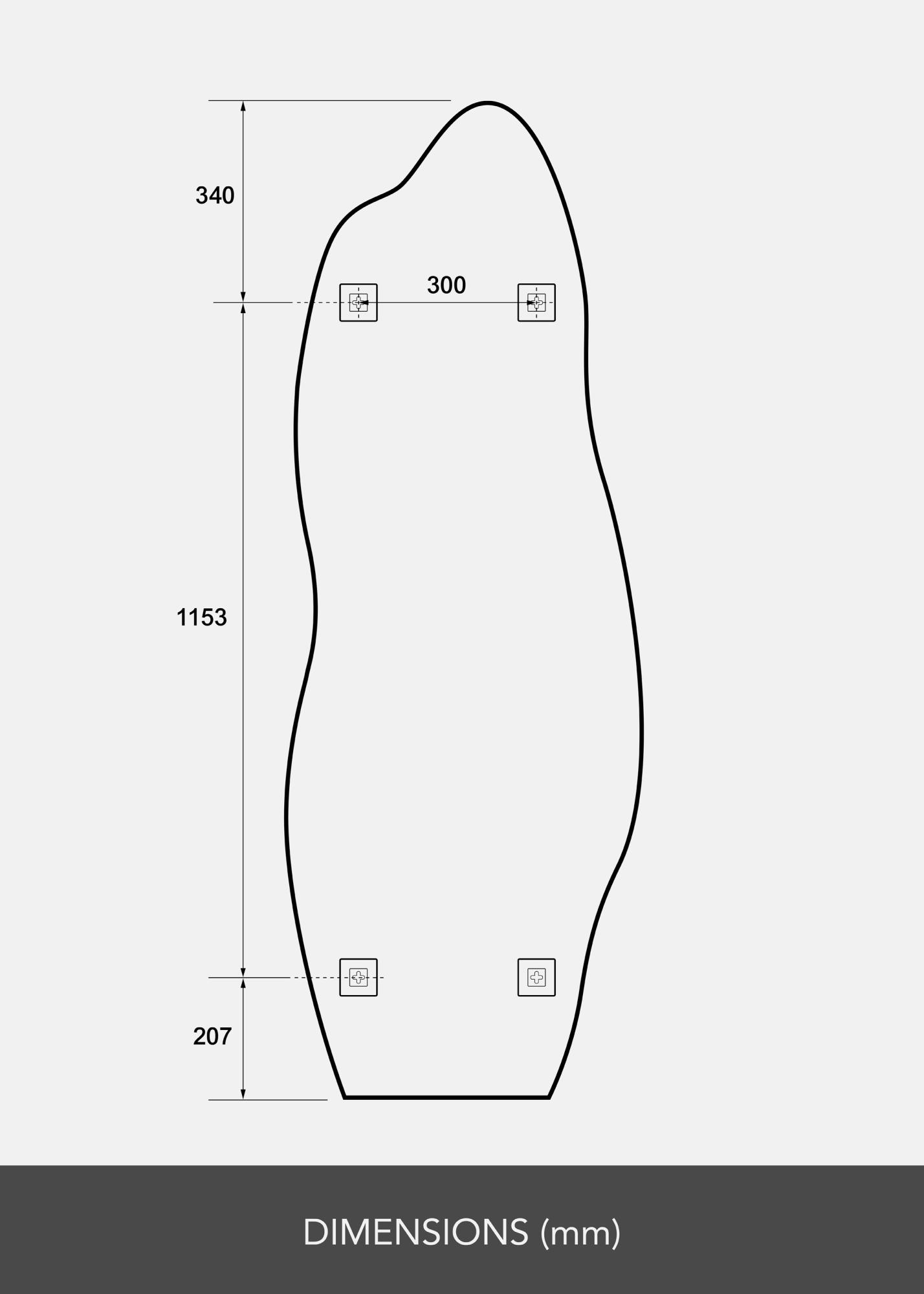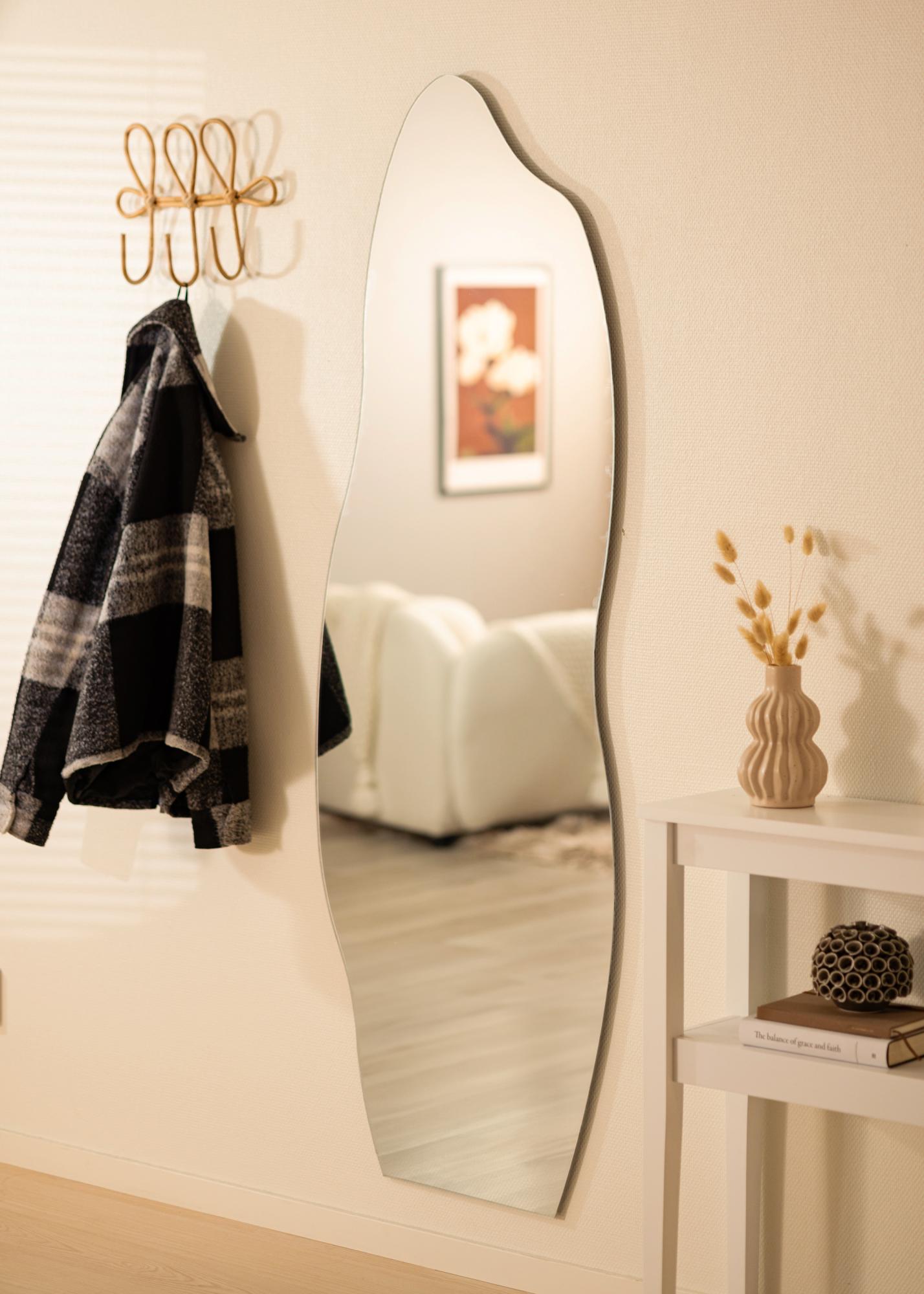 A tükör egyedi, hullámszerű formája széles az aljánál, és elegánsan felfelé ível. Ez a szokatlan forma önmagában műalkotássá teszi, és dinamikus vonást ad a faladnak. Úgy tervezték, hogy otthonod központi eleme legyen, függetlenül attól, hogy az előszobába, hálószobába vagy nappaliba helyezi el.
