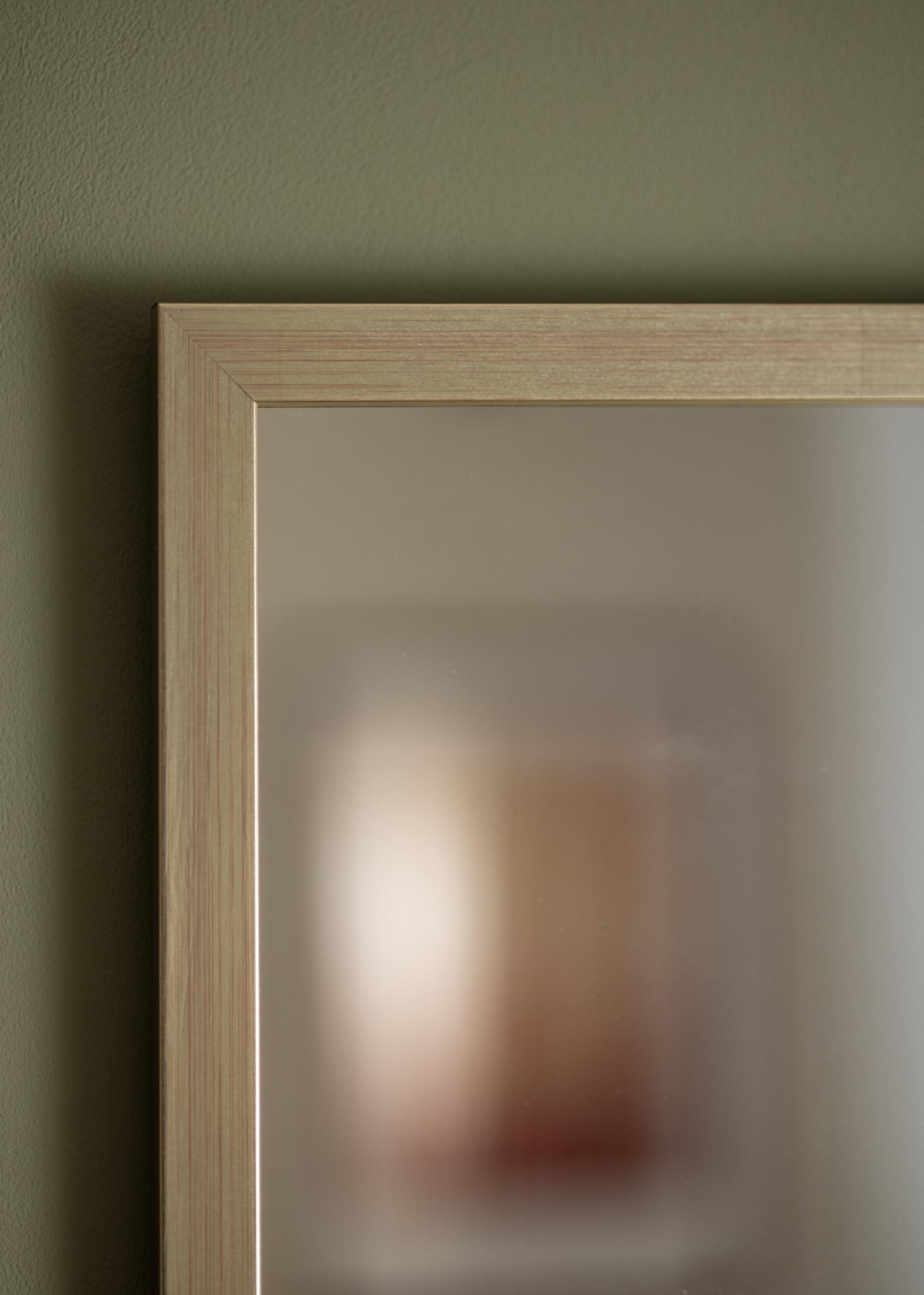 Ez a tükör ayous fából készült, stílusos ezüst árnyalatban festve. A keret 22 mm széles és egyenes profilú, ami kissé letisztult megjelenést kölcsönöz. Helyezze a tükröt az előszobába, a hálószobába vagy a nappaliba, és hagyja, hogy szépen visszatükrözze a lámpák és ablakok fényét.