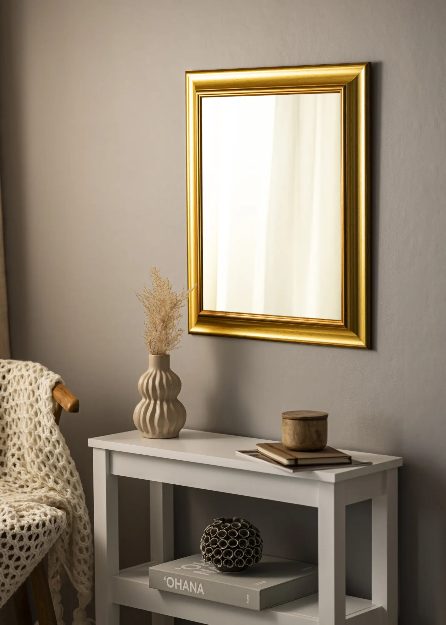 A Hampshire Arany Tükör egy méretre szabott tükör, amelyet azért gyártunk, hogy pontosan megfeleljen az Ön igényeinek. Elegáns arany színével és 64 mm széles keretével stílusos eleme lesz bármely helyiségnek. A tükör 31 mm mélysége robusztus érzetet kölcsönöz neki, miközben beleolvad a berendezésbe.
