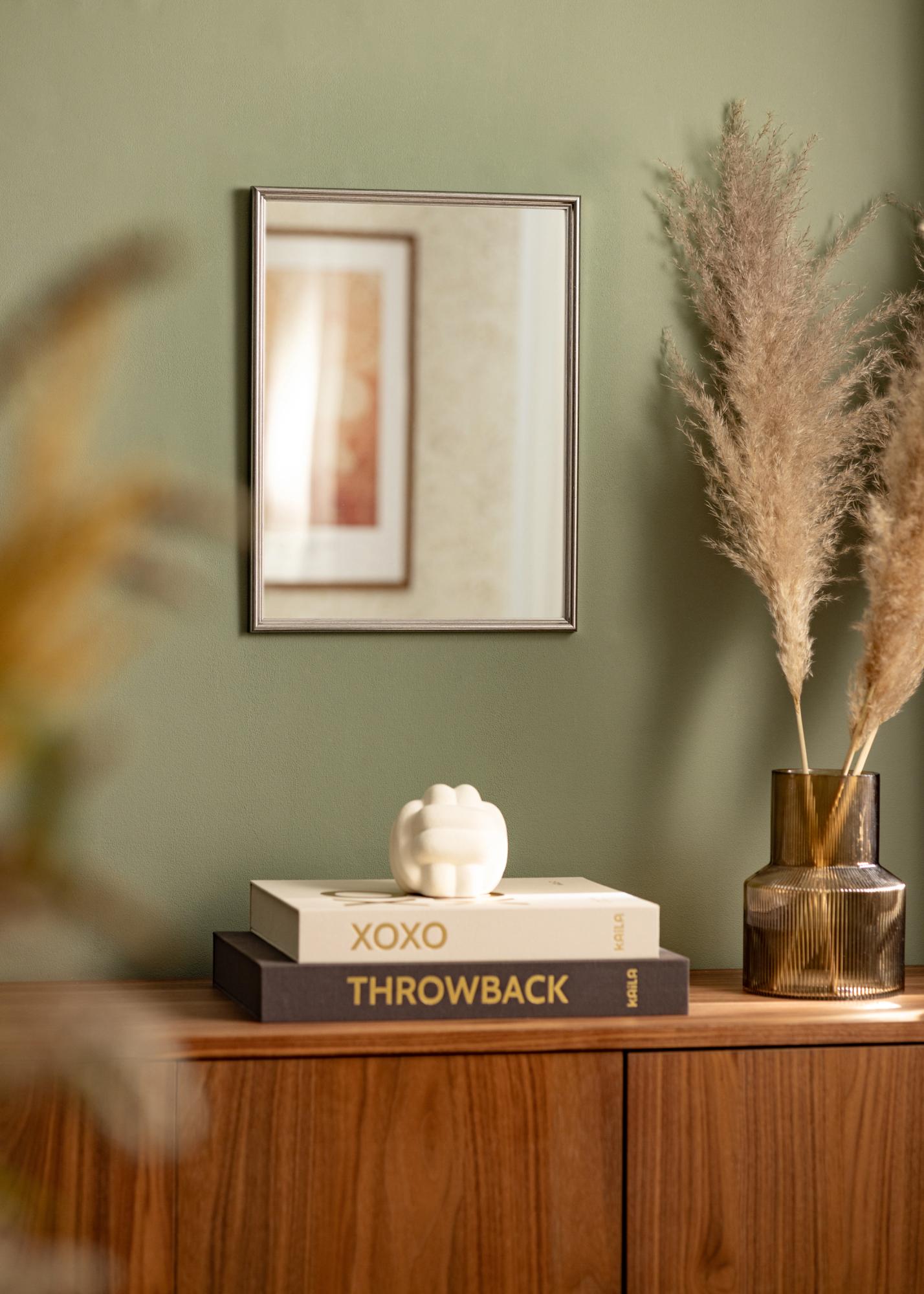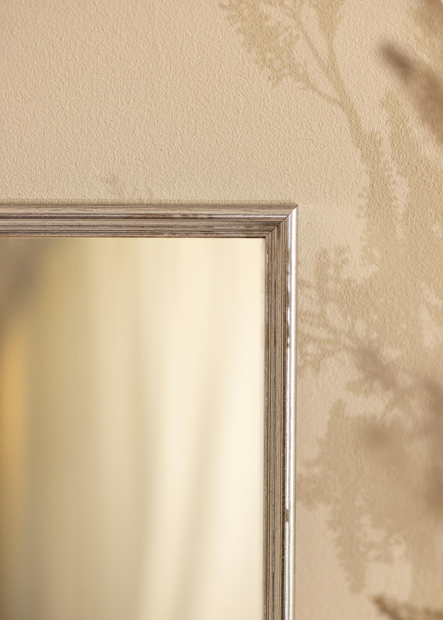 Készíttessünk egy tükröt, amely tökéletesen illik az otthonodba! Ez a csodálatos tükör saját méretei szerint rendelhető, így biztos lehetsz benne, hogy tökéletes lesz. A tükör klasszikusan profilozott kerettel rendelkezik, amely fényes ezüstszínűre van festve. Jól passzol például fekete, fehér és lila belsőépítészeti elemekhez.