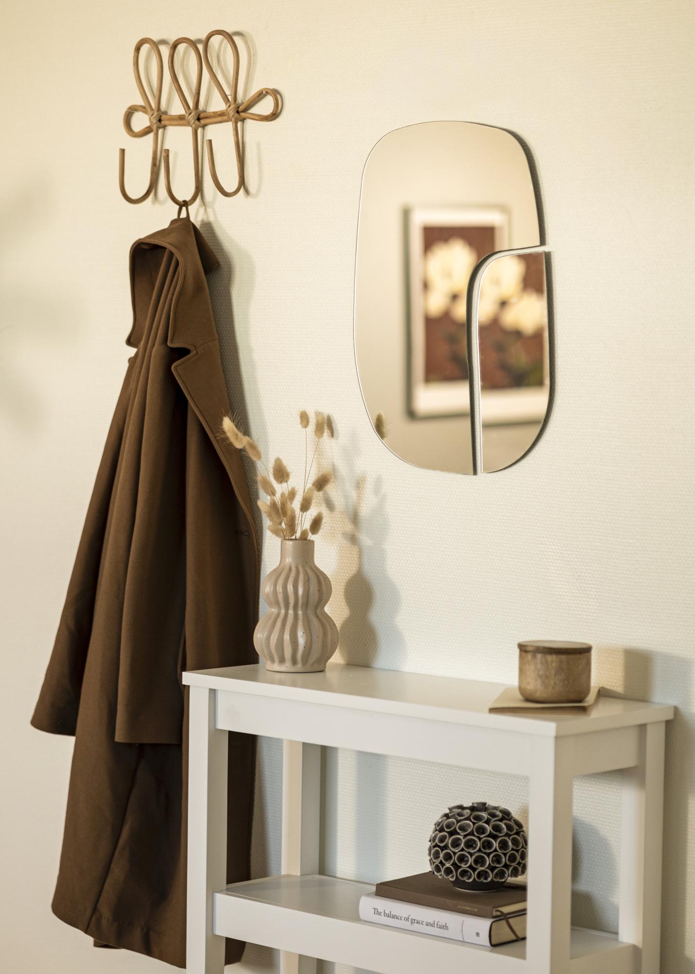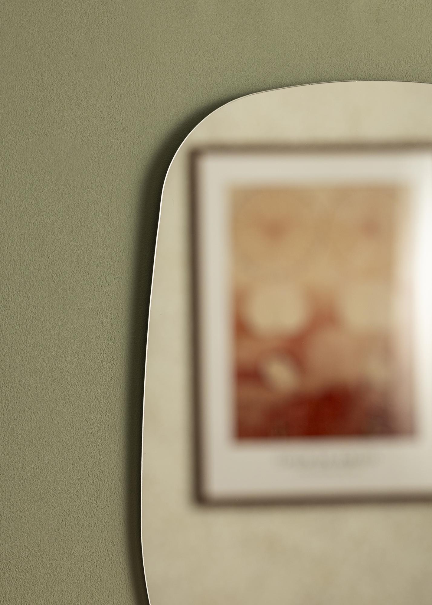 Fedezze fel a stílus új dimenzióját ezzel a tükörkészlettel, amely egyedi esztétikát kínál otthonának. Két tükörrel, amelyek együtt téglalap alakot formálnak, lágyan lekerekített sarkokkal és egy jellegzetesen befelé hajló oldallal, ez a készlet kortárs műalkotássá válik a falán. A modern dizájn nemcsak a nagyobb tér illúzióját kelti, hanem egy olyan formatervezési elemet is, amely vonzza a szemet.