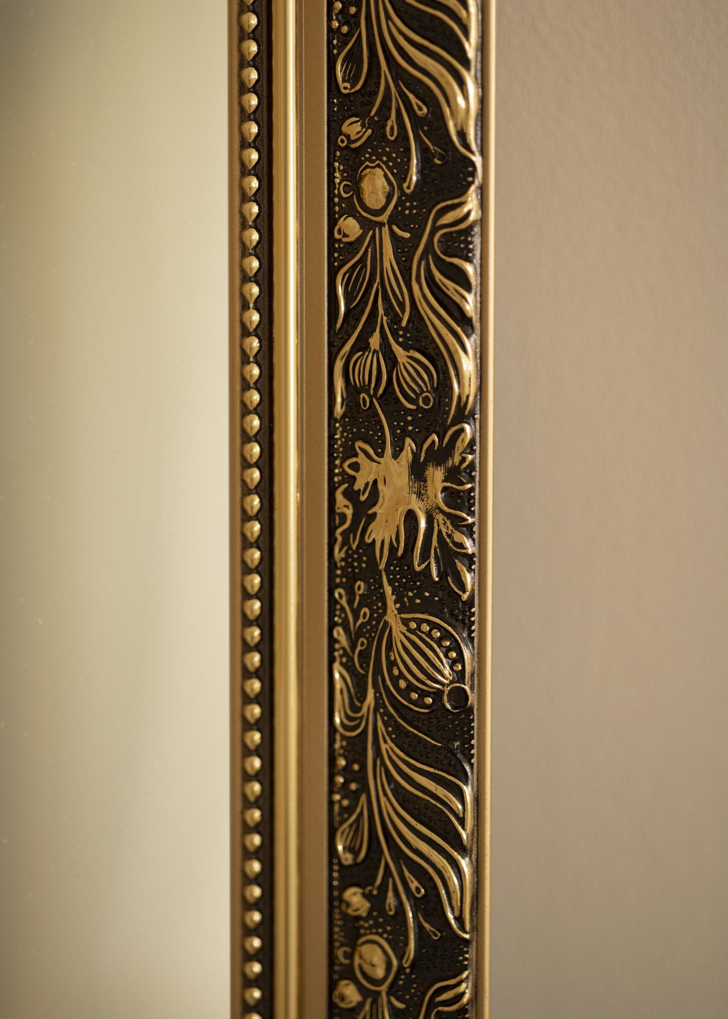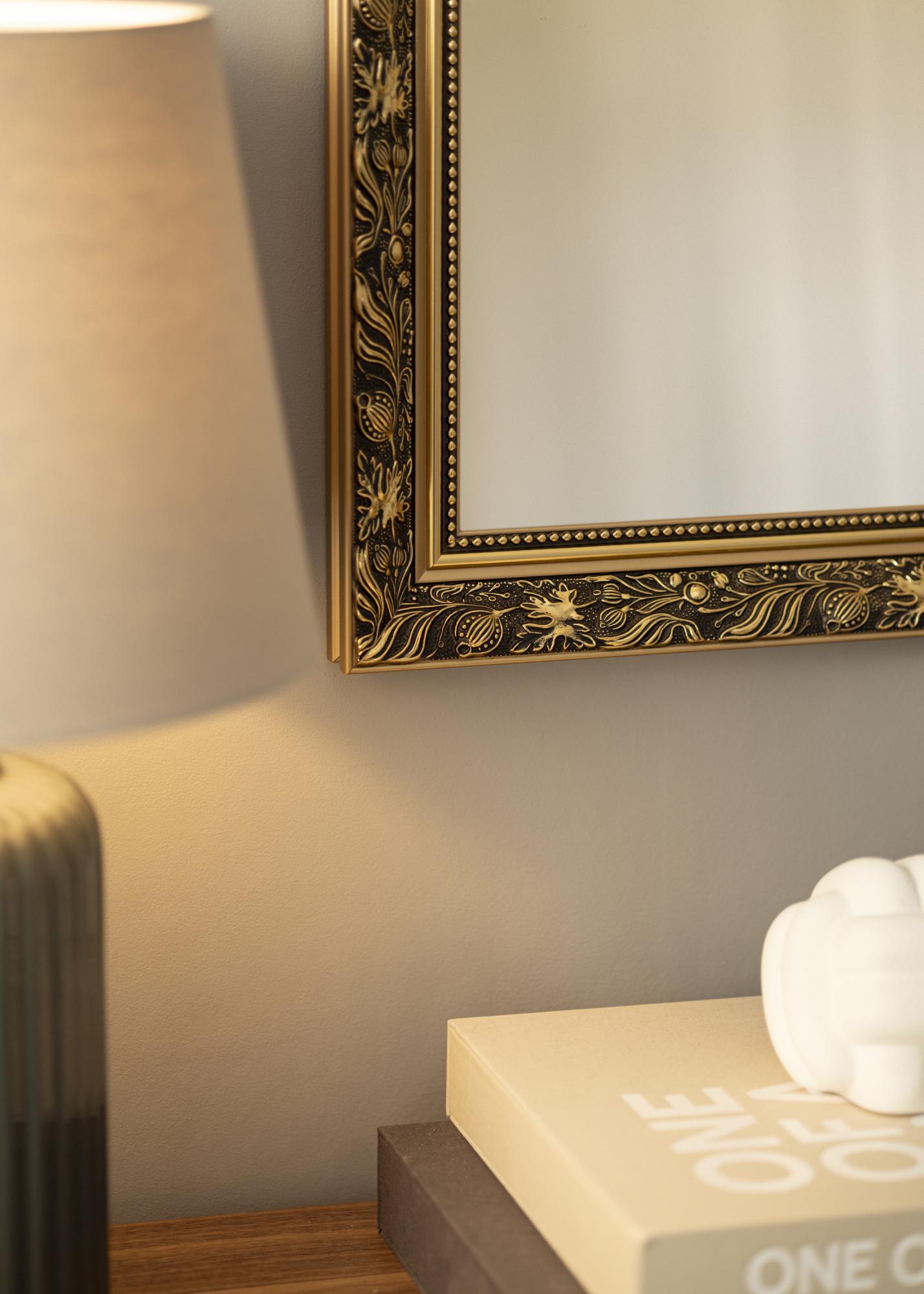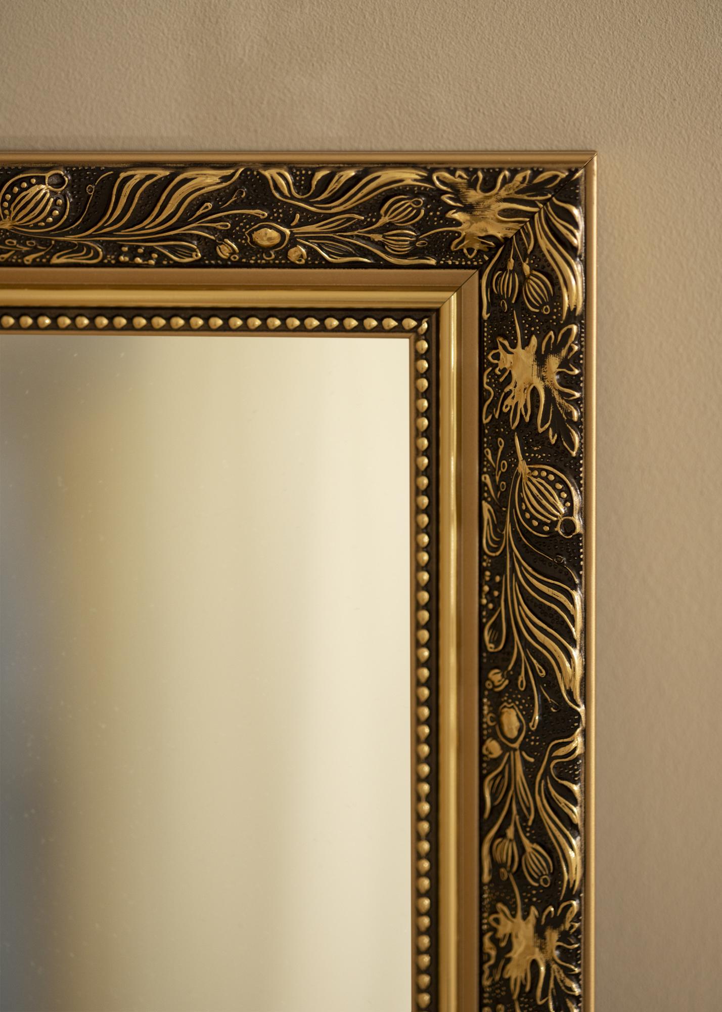Hozz létre hívogató és luxus érzetet bárhol, ahol ezt a gyönyörű tükröt választod elhelyezni! A tükör romantikusan megtervezett kerettel rendelkezik, kacskaringós mintákkal, egyenes élekkel és különböző szintek gyöngysorával. Az arany színe tökéletesen illeszkedik más arany színű, pasztell színű, fekete és fehér lakberendezési elemekhez!