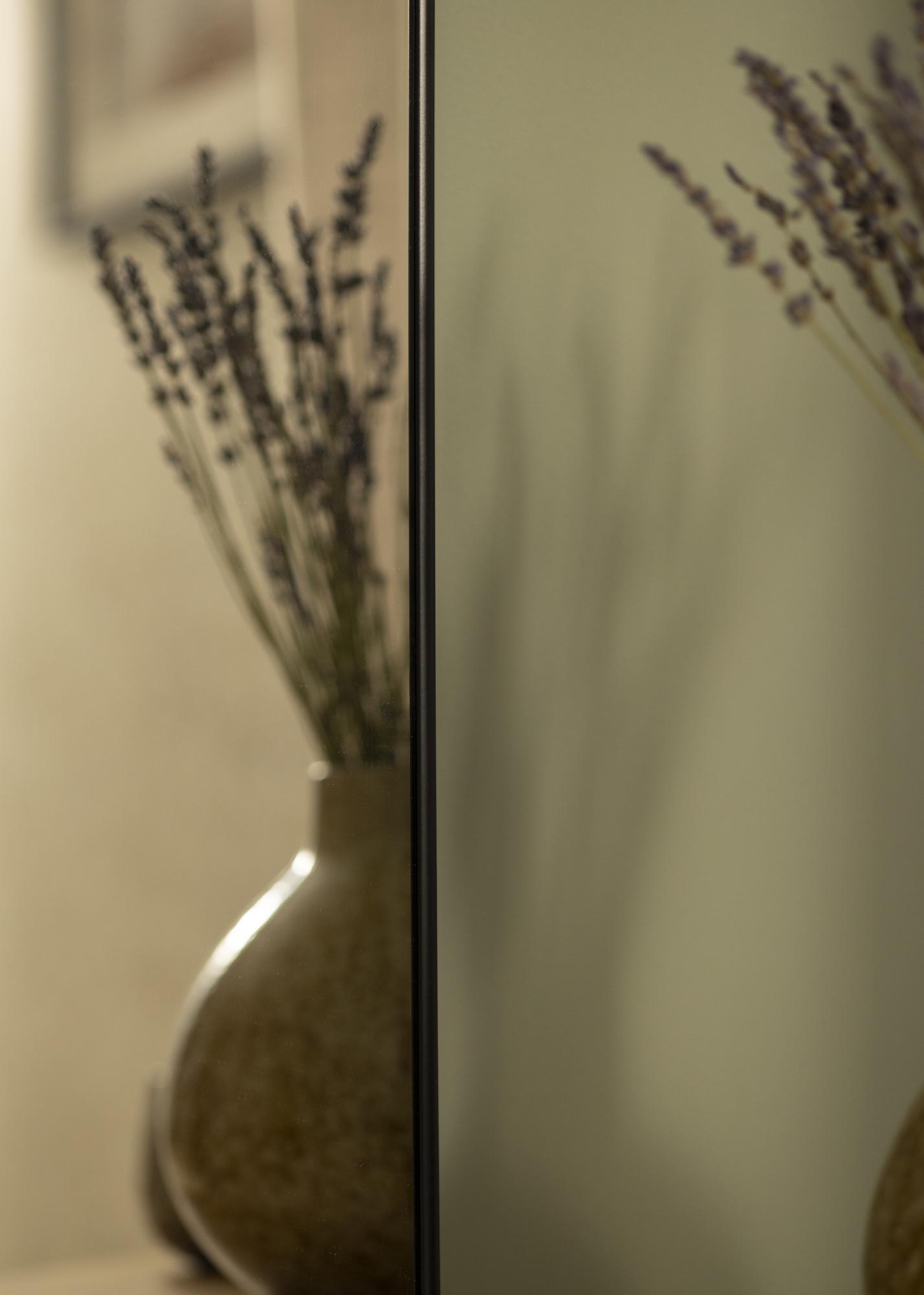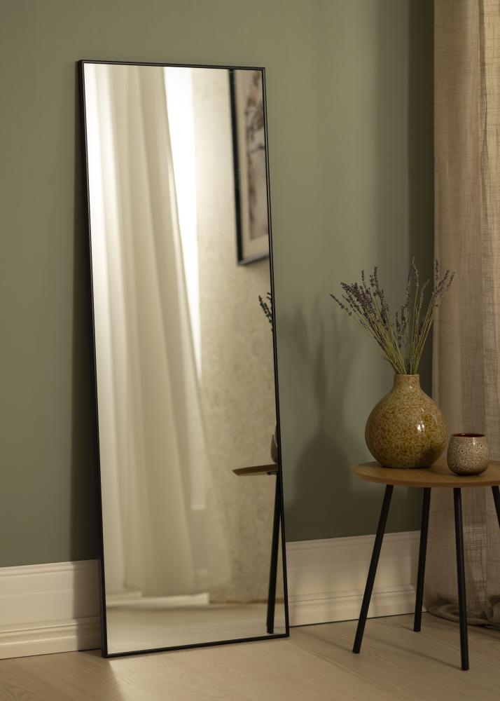 Ez a tükör álló helyzetben való felfüggesztésre készült, így kiváló választás hálószobák, folyosók vagy gardróbok számára, ahol a függőleges helykihasználás kulcsfontosságú. A fekete alumínium keret diszkrét, mégis feltűnő szegéllyel fogja körbe a tükörüveget, amely számos lakberendezési stílust kiegészít, a modern minimalizmustól a klasszikus sikkig.