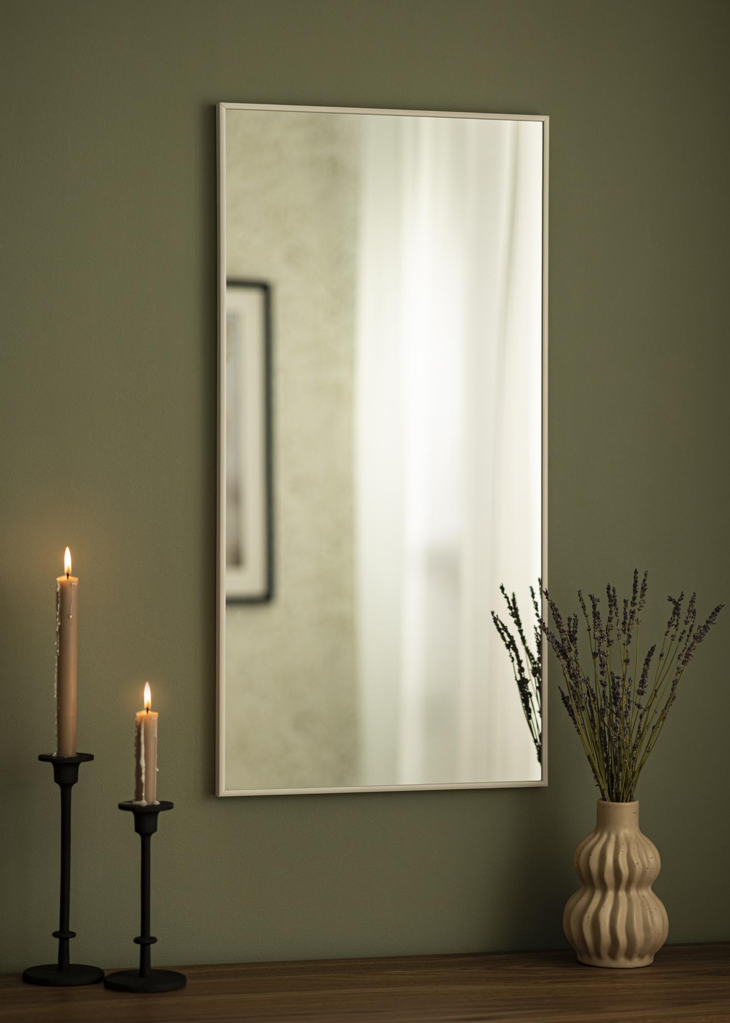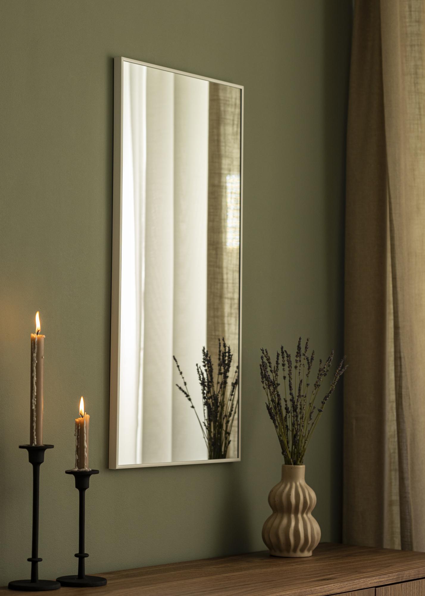 Tegyen otthonaiba tér- és fényérzetet ezzel a stílusos tükörrel. 40,5x80,5 cm-es méreteivel tökéletes a nagyobb szoba illúziójának keltésére vagy praktikus részletként az előszobában. A fehér alumínium keret modern megjelenést kölcsönöz, miközben a dizájnt tisztán és időtlenül tartja.