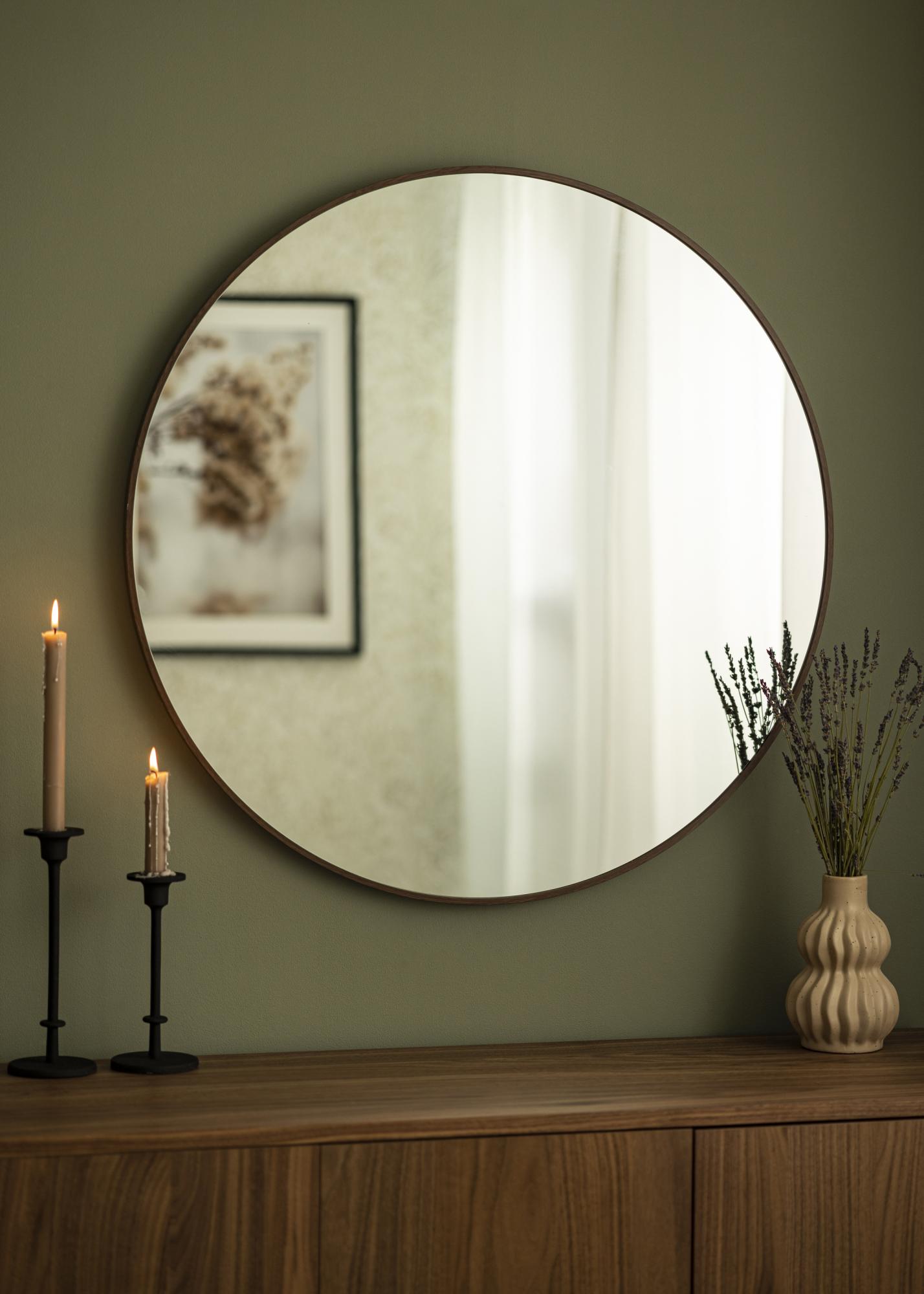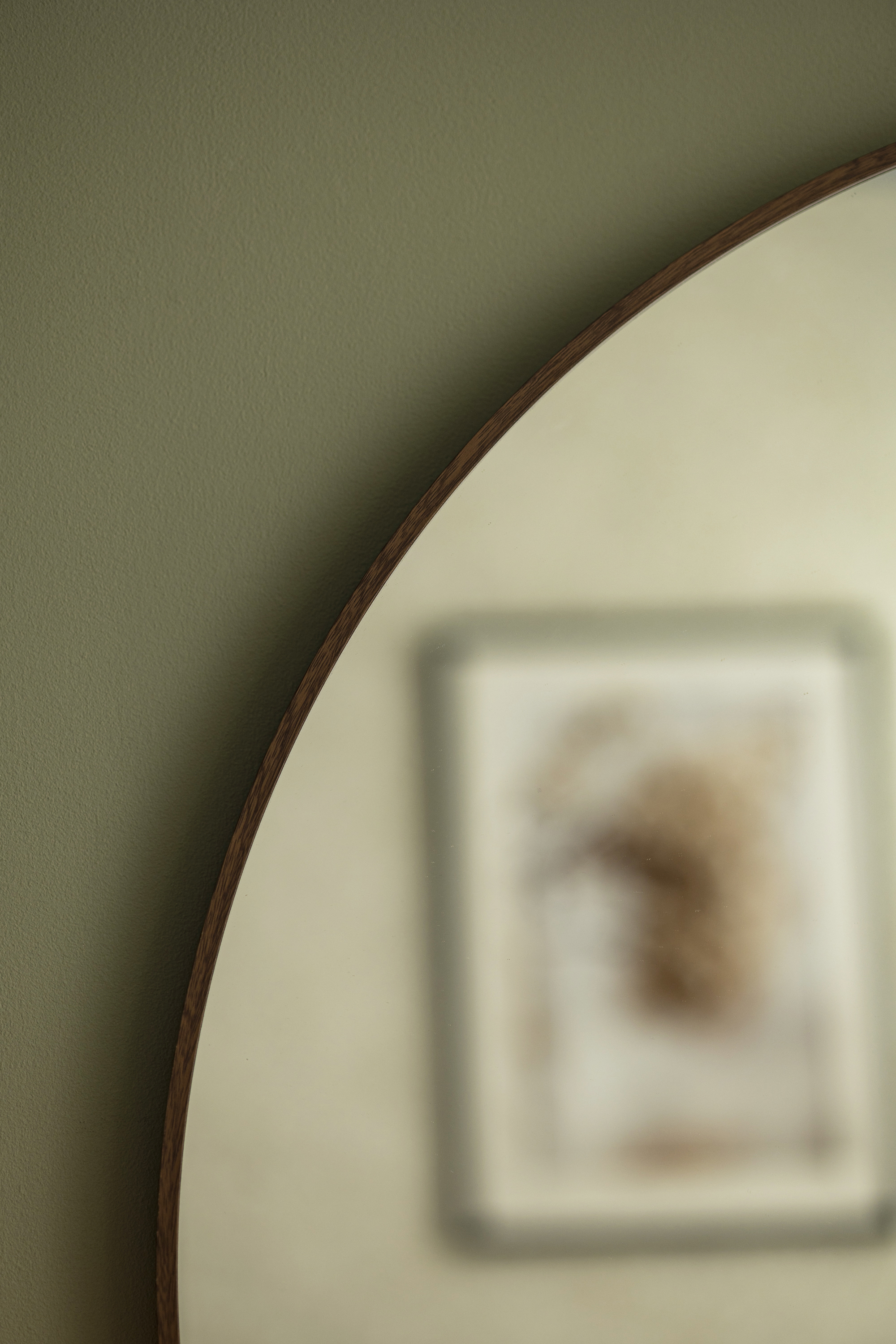 Fedezze fel az elegáns stílust a falra szerelhető tükrünkkel, amely tökéletes arra, hogy tér- és fényérzetet adjon otthonának. Lenéző átmérője 80 cm, így ez a tükör azonnali figyelemfelkeltő bármelyik szobában. Kerek formája lágy és hívogató érzést nyújt, miközben az alumíniumból készült diószínű keret egy csipetnyi kifinomultságot kölcsönöz.