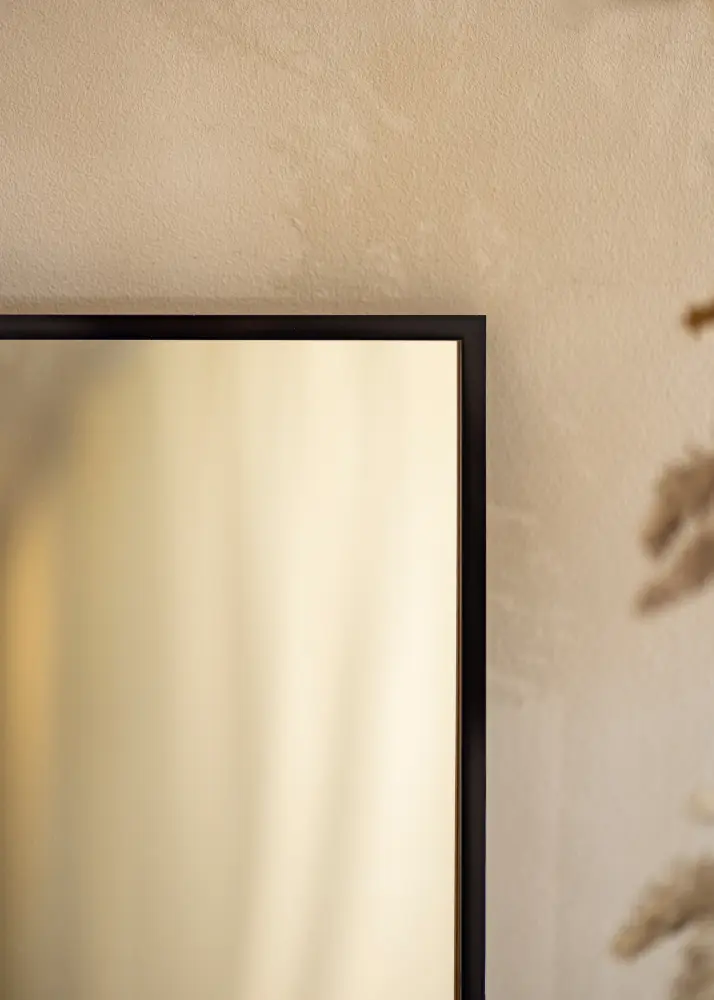 Elegáns prémium tükör magasfényű vékony fekete kerettel, amely tökéletesen illeszkedik egy modern, letisztult belső térhez.