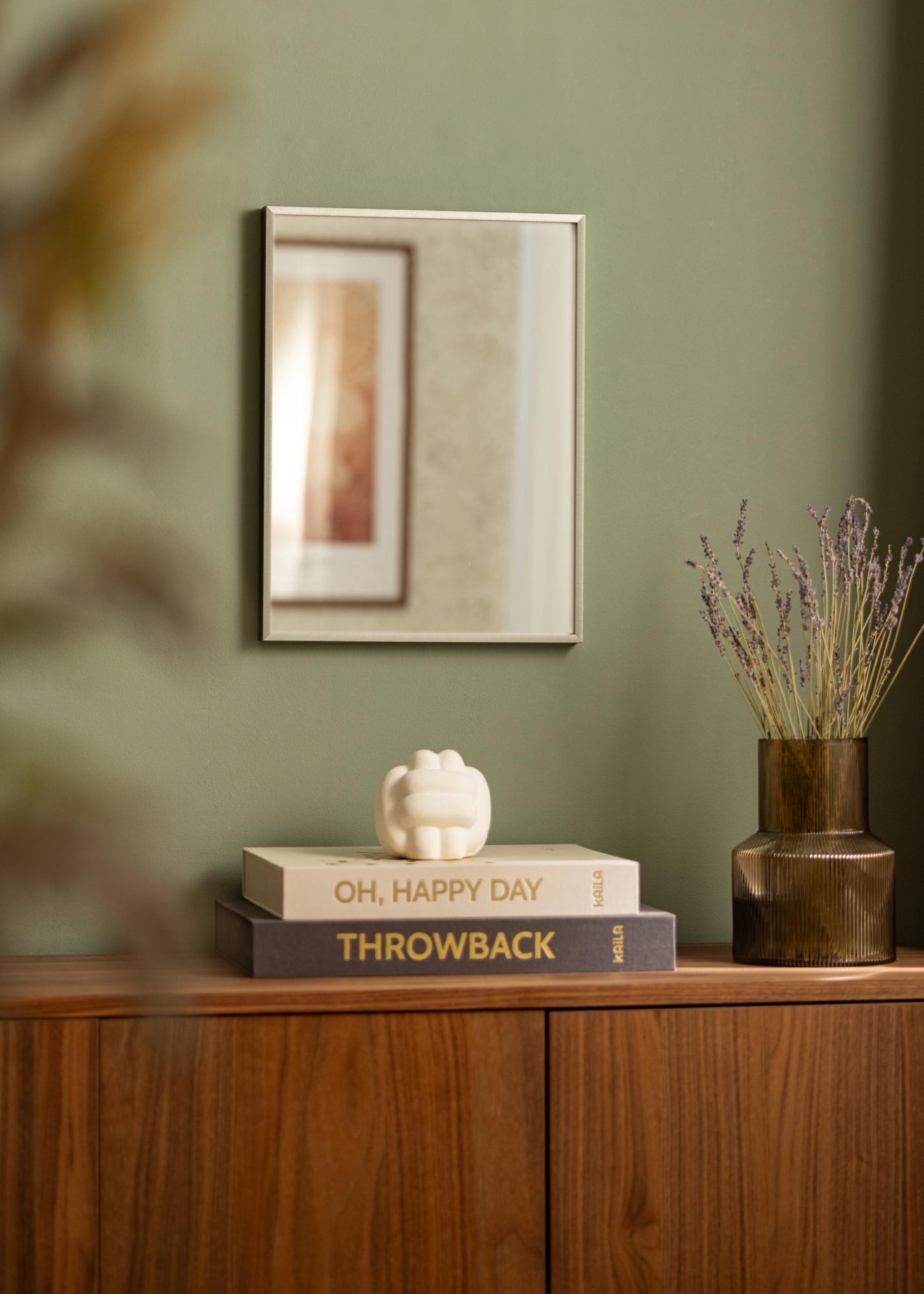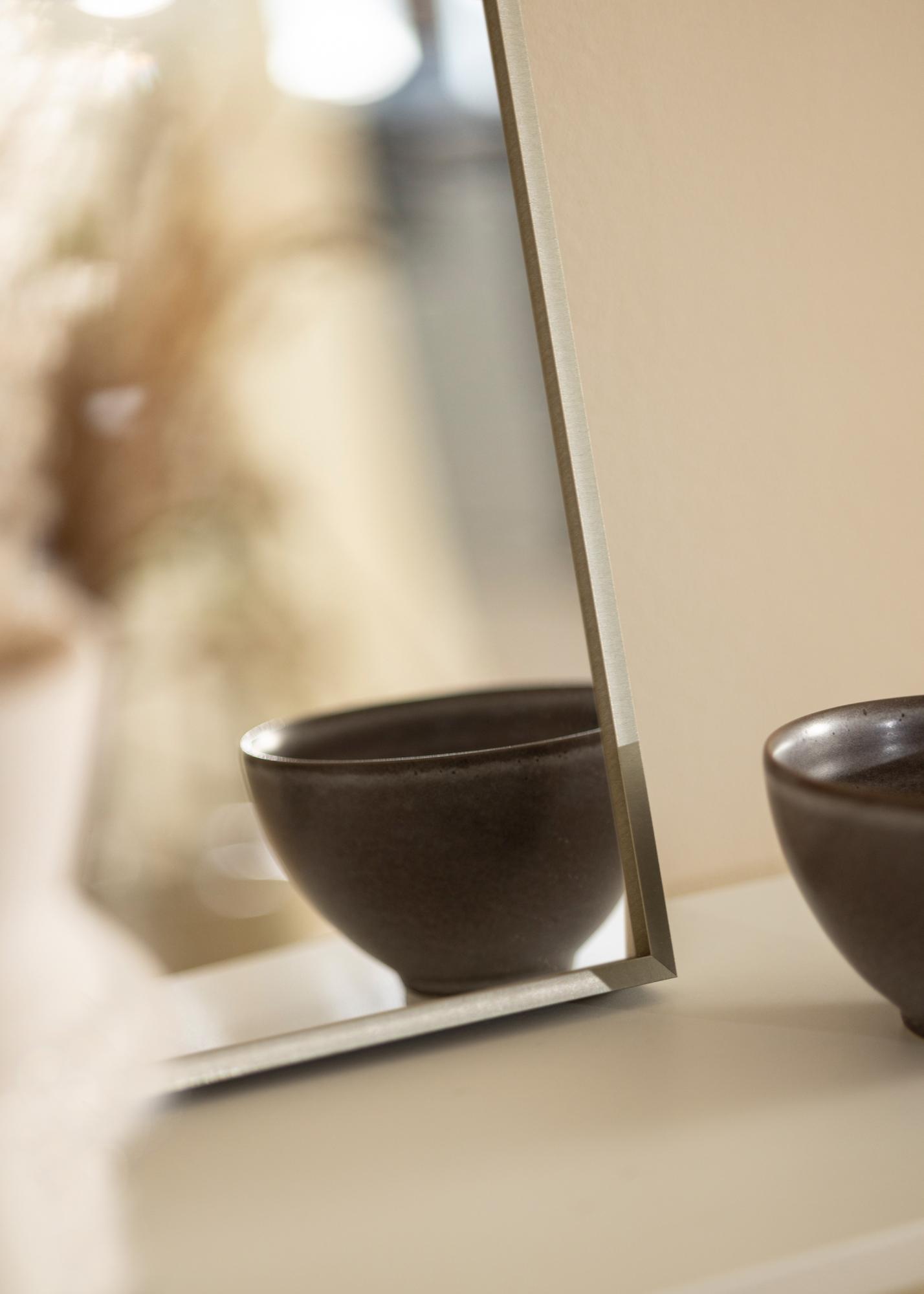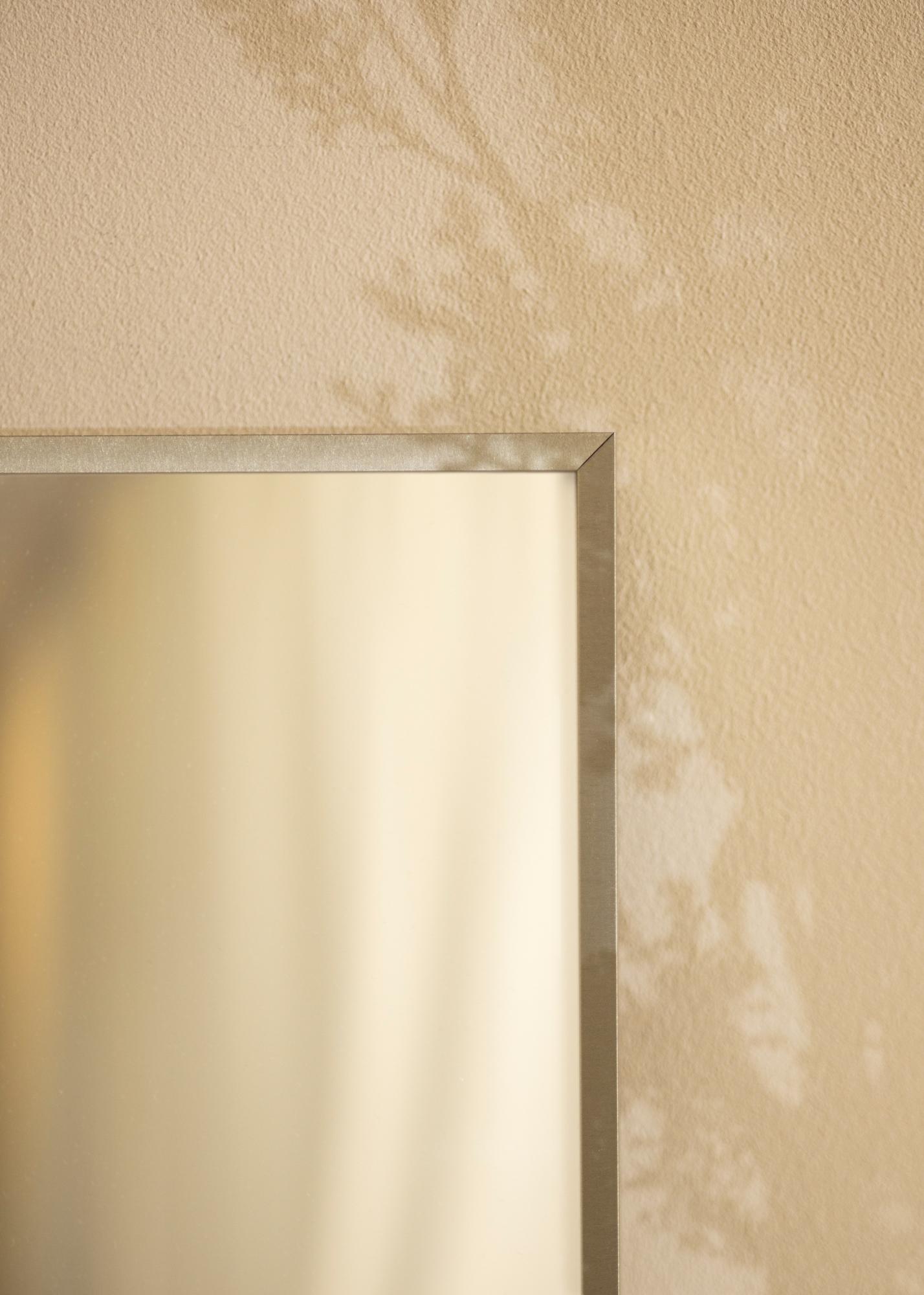 Ennek a tükörnek gyönyörű ezüst színe van, amely időtlen és kifinomult benyomást kelt. A keret 7,8 mm széles és alumíniumból készült, ami robusztus és tartós szerkezetet biztosít a tükörnek, miközben megőrzi a könnyed és sima érzetet. A 25,9 mm-es mélység biztosítja, hogy a tükör szilárdan üljön a falon, elegáns megjelenést kölcsönözve.
