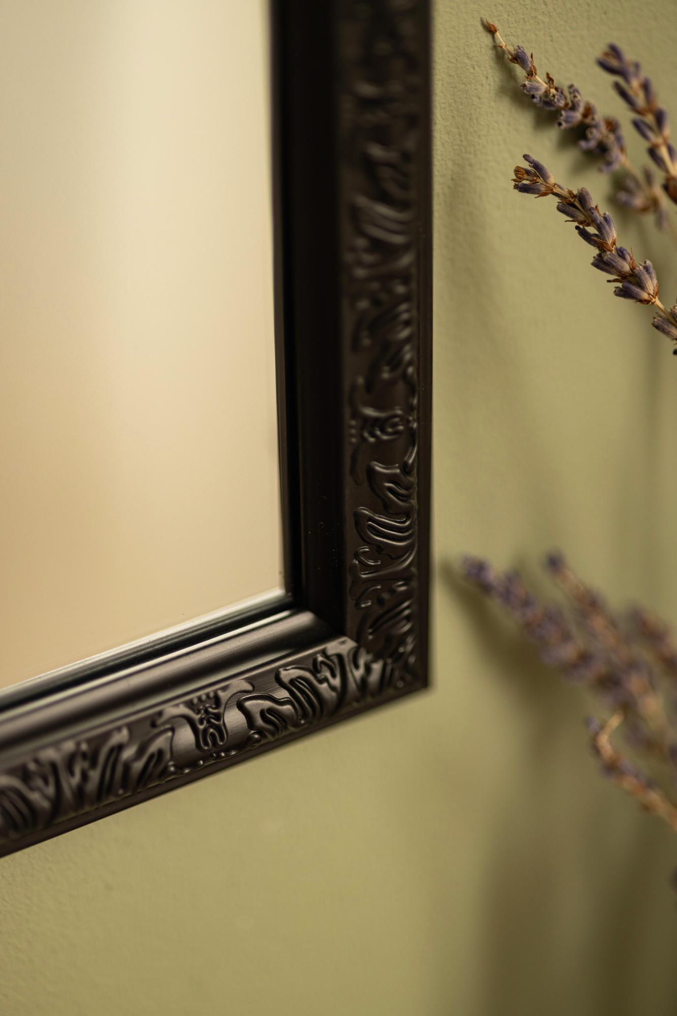 Indítsd el a keretválasztót »A Nost Svart egy falitükrök sorozata. A keret gazdagon díszített szabálytalan szimbólumokkal, amelyek kissé misztikus benyomást keltenek.