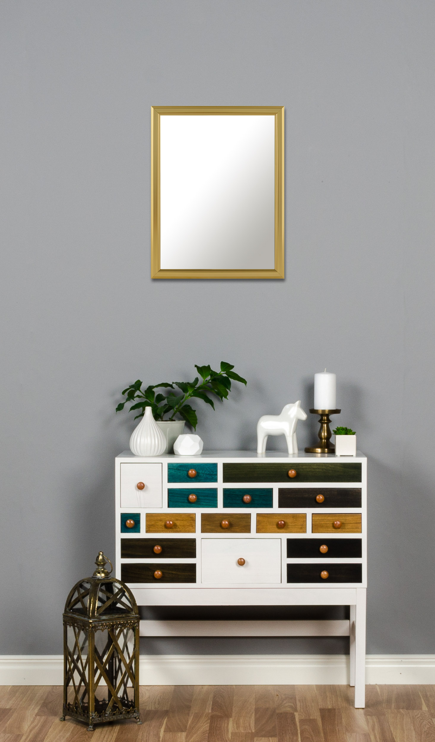 Tervezed, hogy aranyszínű kereteket és más belsőépítészeti elemeket párosítasz egy arany tükörrel? Akkor számos szép dizájn közül választhatsz! Pontosan ez a modell kellemes profillal rendelkezik, finom csíkokkal, amelyek különböző arany árnyalatokban váltakoznak.