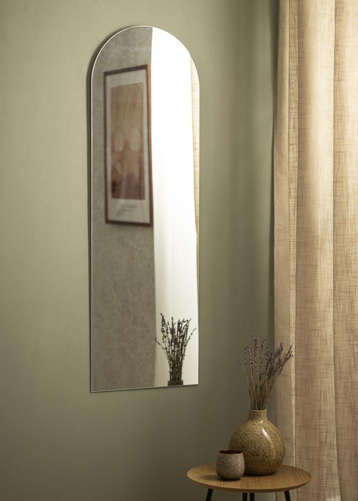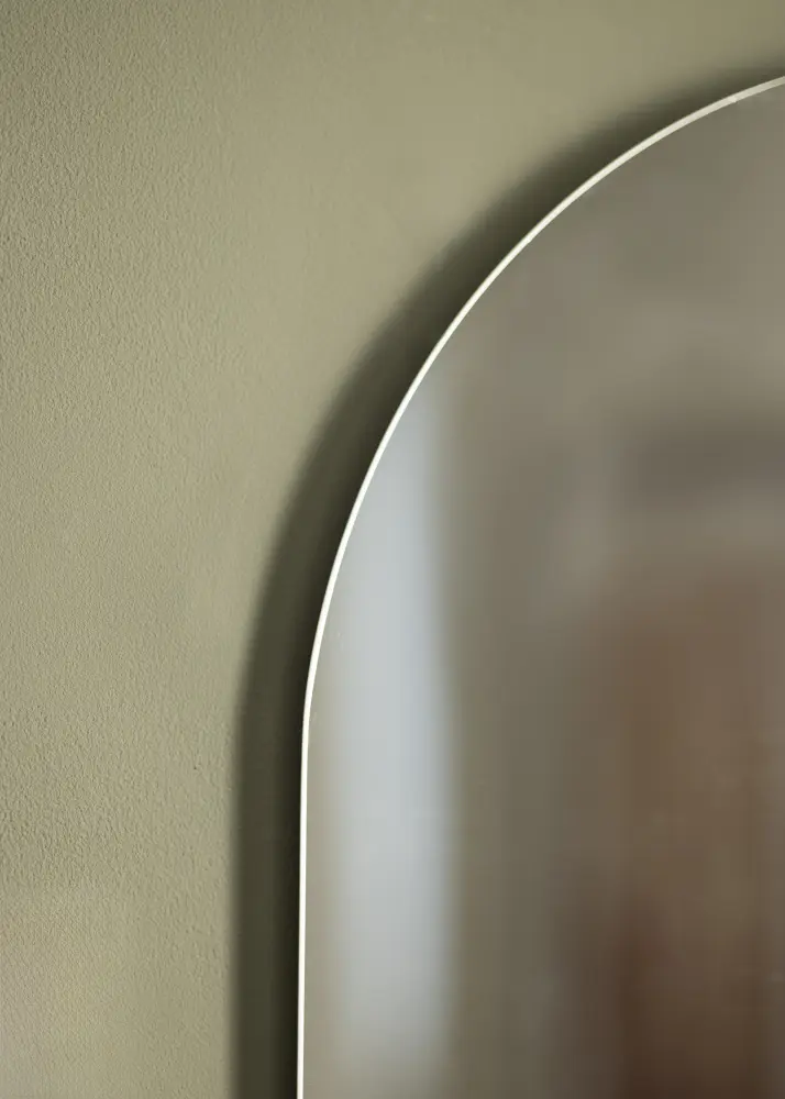 Ez egy hosszúkás fali tükör, amely tökéletesen alkalmas teljes alakos tükörnek az előszobába vagy a hálószobába. Ezenkívül nagyon jól mutat, ha egy bútor fölé helyezi – például egy lerakóasztal vagy egy tálalószekrény fölé –, hogy dinamikus kontrasztot teremtsen. A fali tükör minimalista dizájnnal rendelkezik, íves kialakítással, tükörkeret nélkül. A tükörüveg vékony, a további elegancia érdekében.