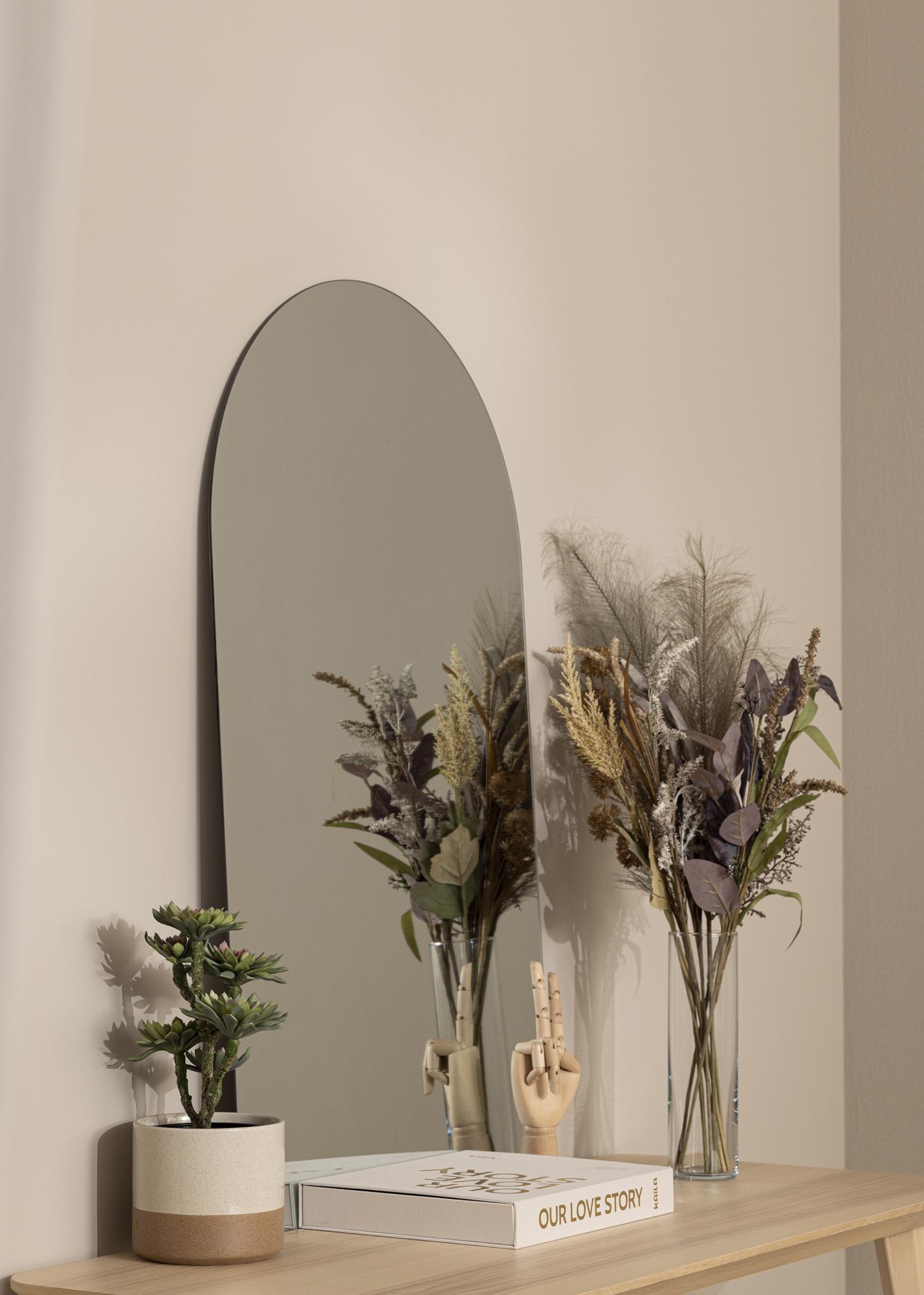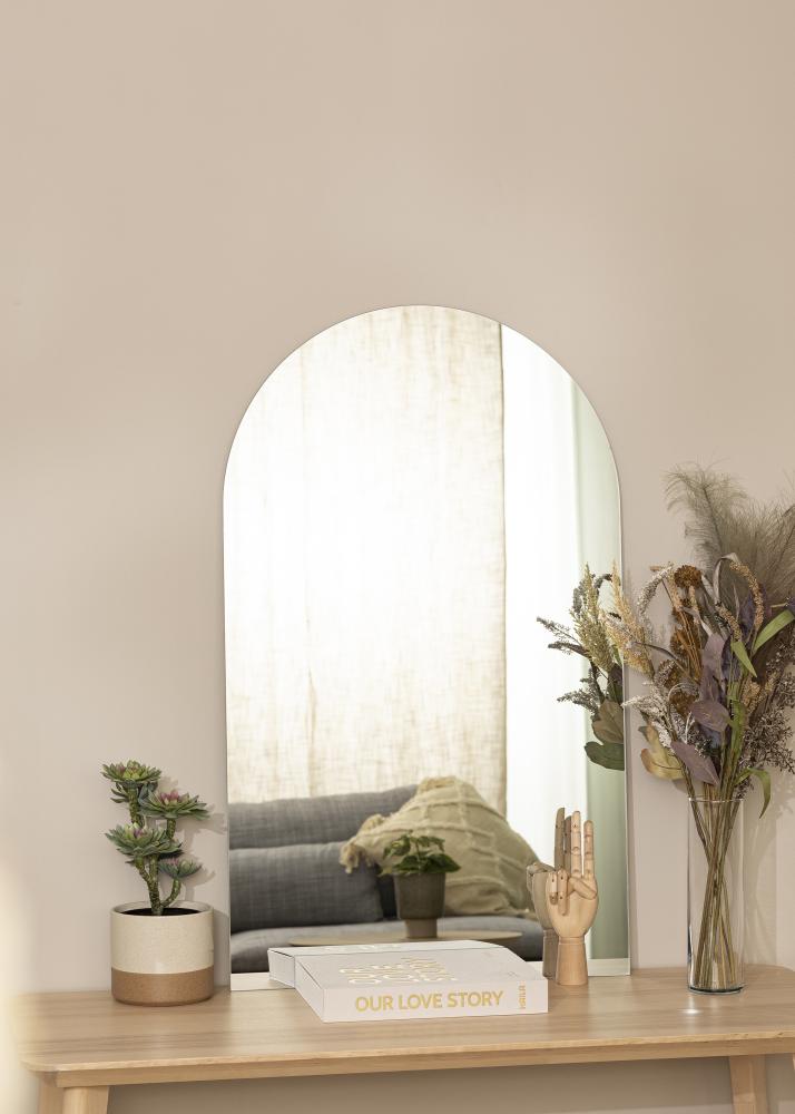 Ez egy nagyon elegáns tükör, vékony tükörüveggel és klasszikus ívelt kialakítással. A tükör keret nélkül készült, ami minimalista megjelenést kölcsönöz neki. Ennek a fali tükörnek hátul fali rögzítői vannak a könnyebb felszerelés érdekében abban a helyiségben, amelyet választ.