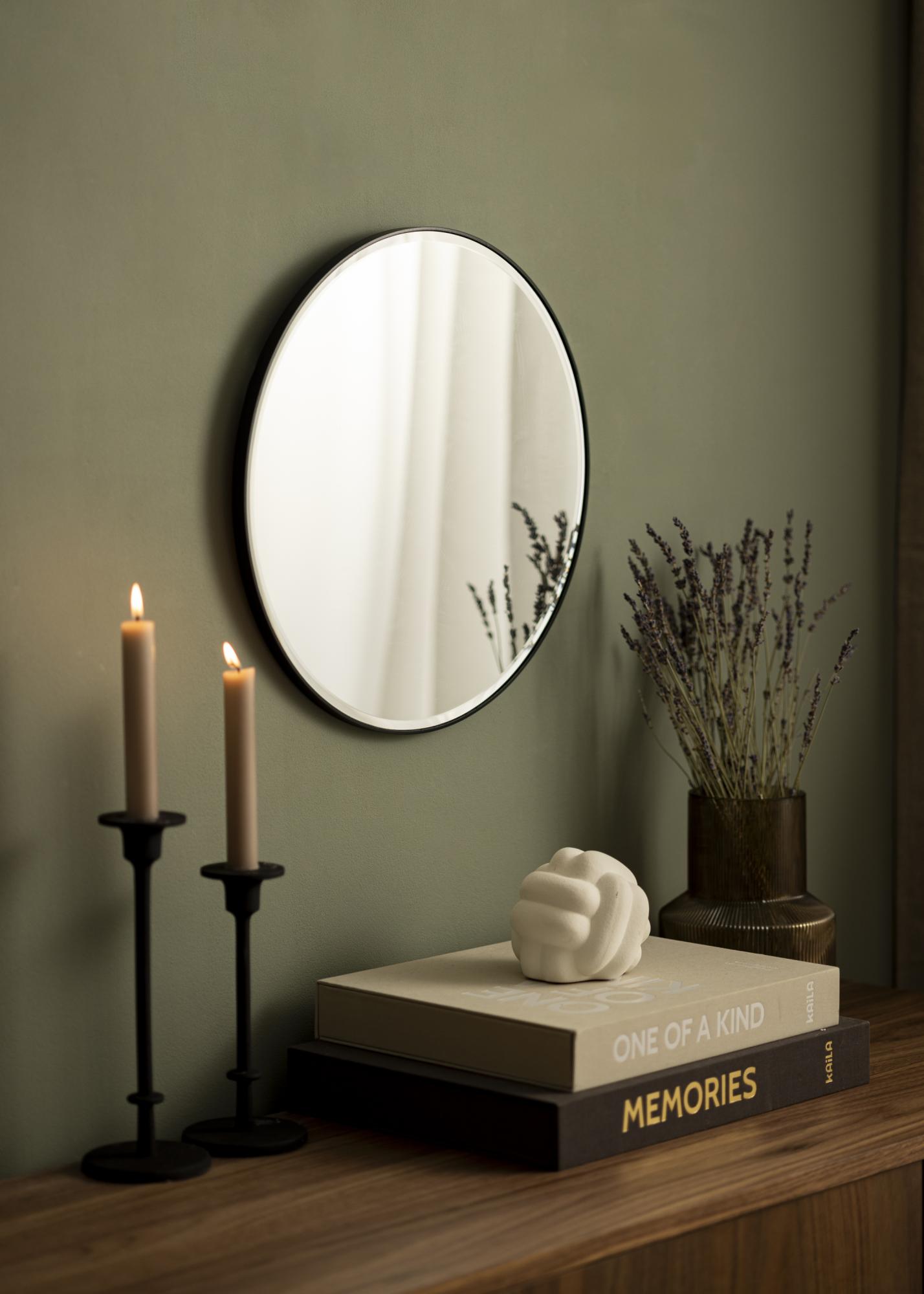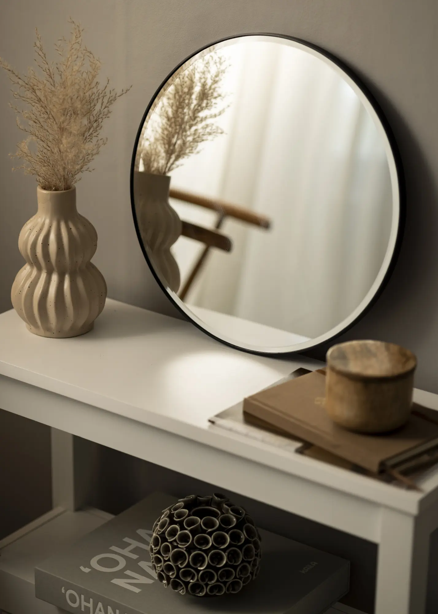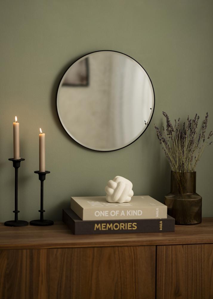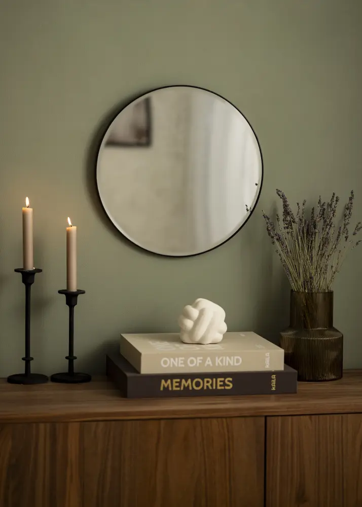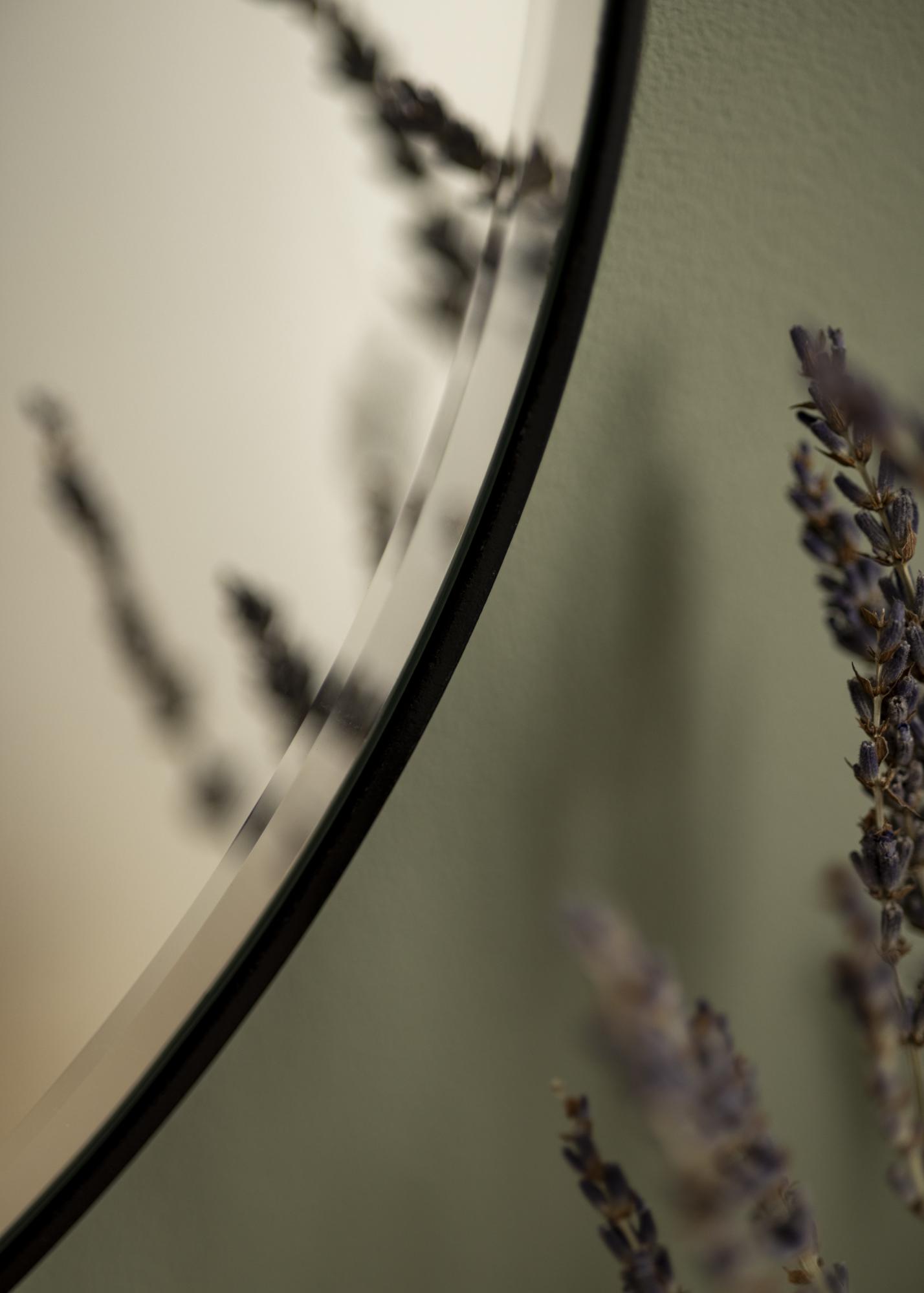 Ez a kerek tükör a dán Incadótól származik, modern dizájnnal és exkluzív érzéssel. Ez a divatos fekete keret és a tükörüveg elegáns fazettás széle sikeres kombinációjának köszönhető. Ez a stílusos dizájn azt is lehetővé teszi, hogy ez a tükör a legtöbb otthonban és belsőépítészeti stílusban helyet találjon.