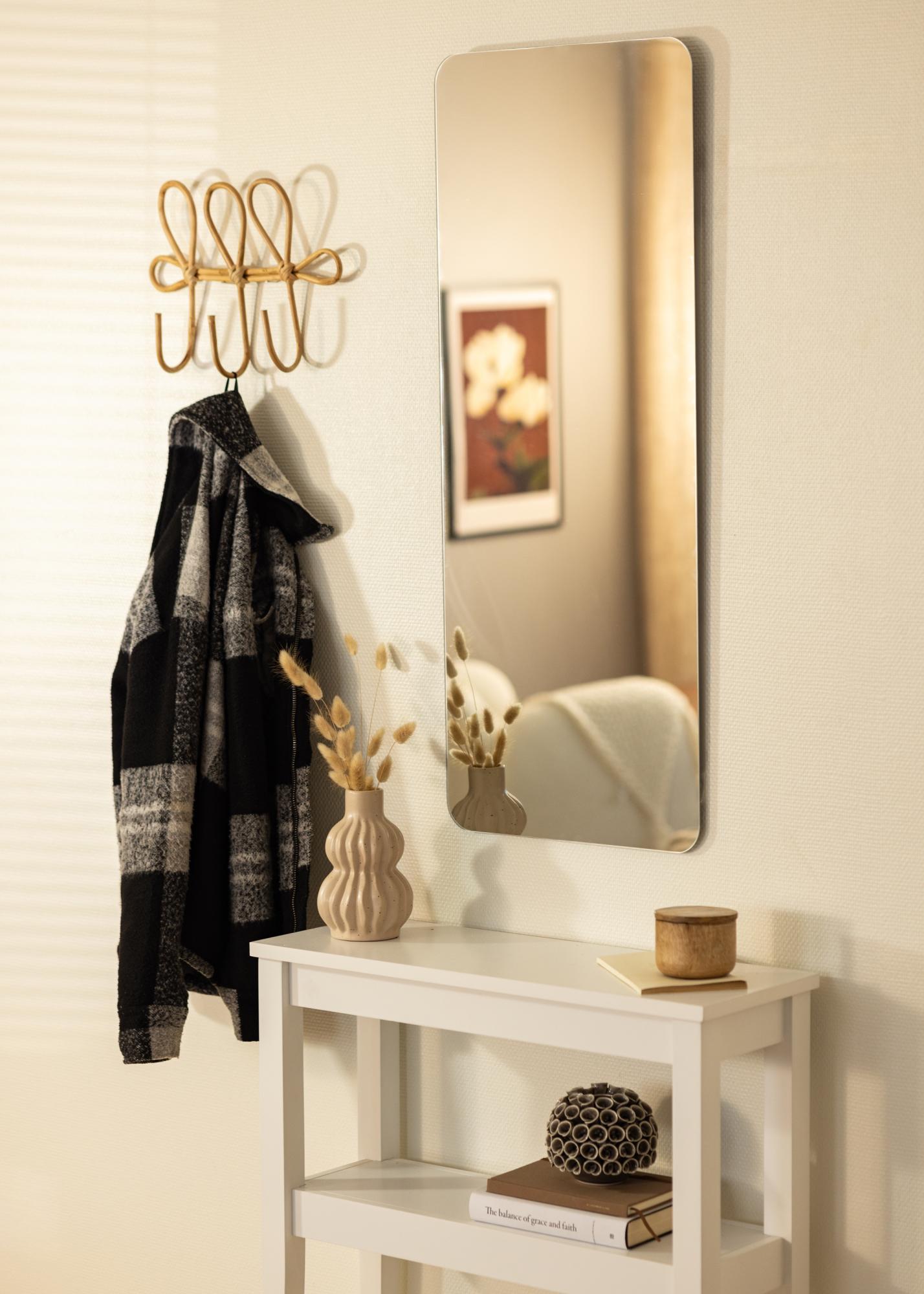 Fedezze fel a letisztult eleganciát a téglalap alakú tükrünkkel, amely tökéletesen kiegészíti otthona minden szobáját. A lekerekített felső sarkok modern és kifinomult légkört teremtenek, miközben fényt és teret adnak a berendezésének. A 40x100 cm-es méretek praktikus és dekoratív részletté teszik, amely ugyanúgy illik az előszobába, mint a hálószobába.