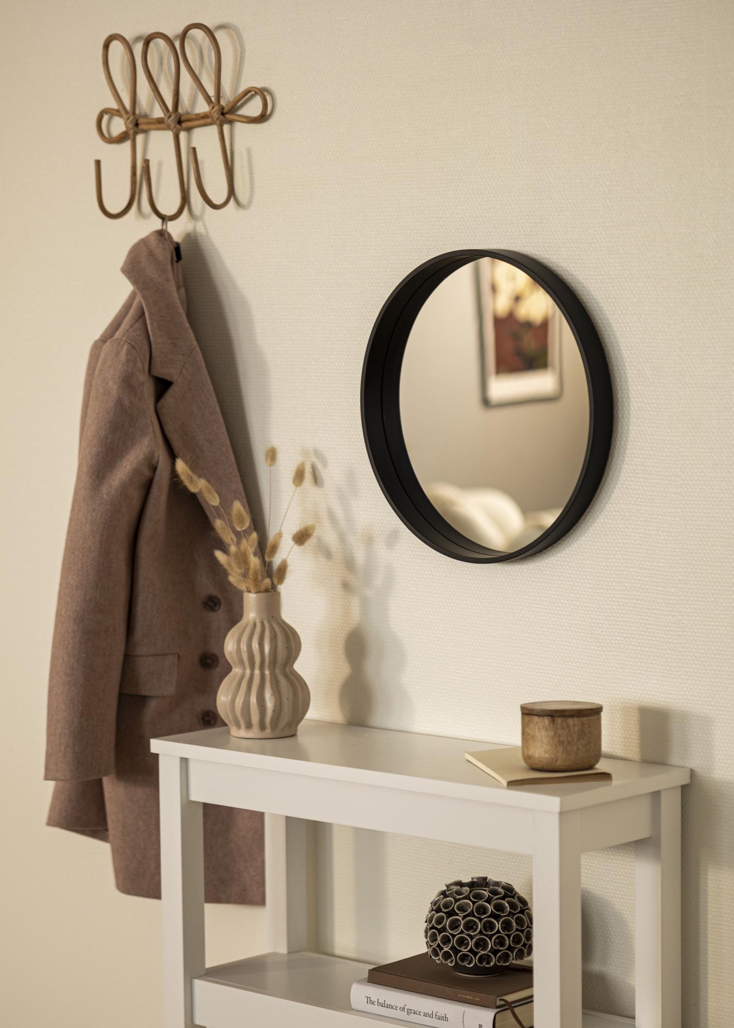 Fekete keretével a tükör feltűnő pont a helyiségben, amely magára vonzza a tekinteteket. Legyen szó előszobáról, nappaliról vagy hálószobáról, ez a tükör feldobja a lakberendezését, és tér- és fényérzetet teremt.