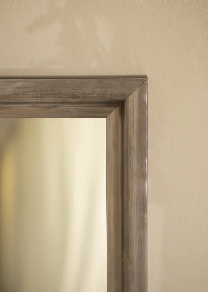 Klasszikus tükör, ahol te magad választhatod meg, mekkora tükröt szeretnél. Széles és mély profiljával ez biztosan egy olyan tükör, amelyre felfigyelnek. A tükör ezüstszínű ceruzafénye kellemes színárnyalatokkal rendelkezik, ami jól illeszkedik azokhoz a képekhez, amelyeket különleges figyelemben kívánsz részesíteni.