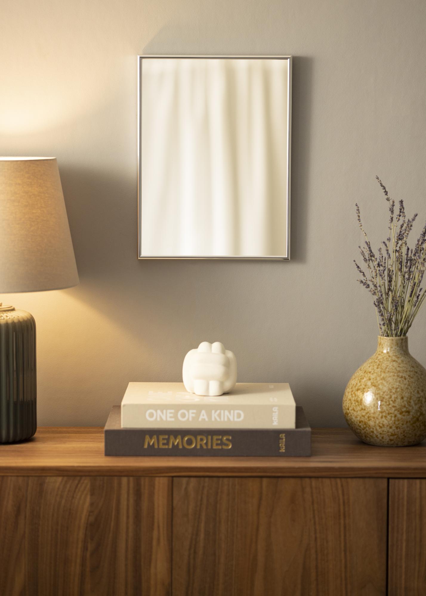 Sandhamn adja tükrének exkluzív keretet ad magasfényű ezüstszínű, kefélt profiljával, amelynek mélysége 26 mm, amely miatt tükröd egy kicsit kiemelkedik a faltól.