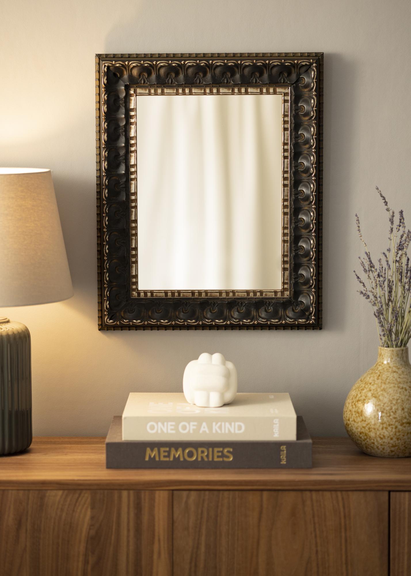 Mi lenne az élet rendkívüli lakberendezési részletek nélkül, amelyek luxus megjelenést kölcsönöznek a szobáknak? Ez a tükör határozottan ilyen. A változatos minta, együtt a fekete és arany árnyalatokkal, magára vonja a tekinteteket, és élénkebbé teszi a faladat.