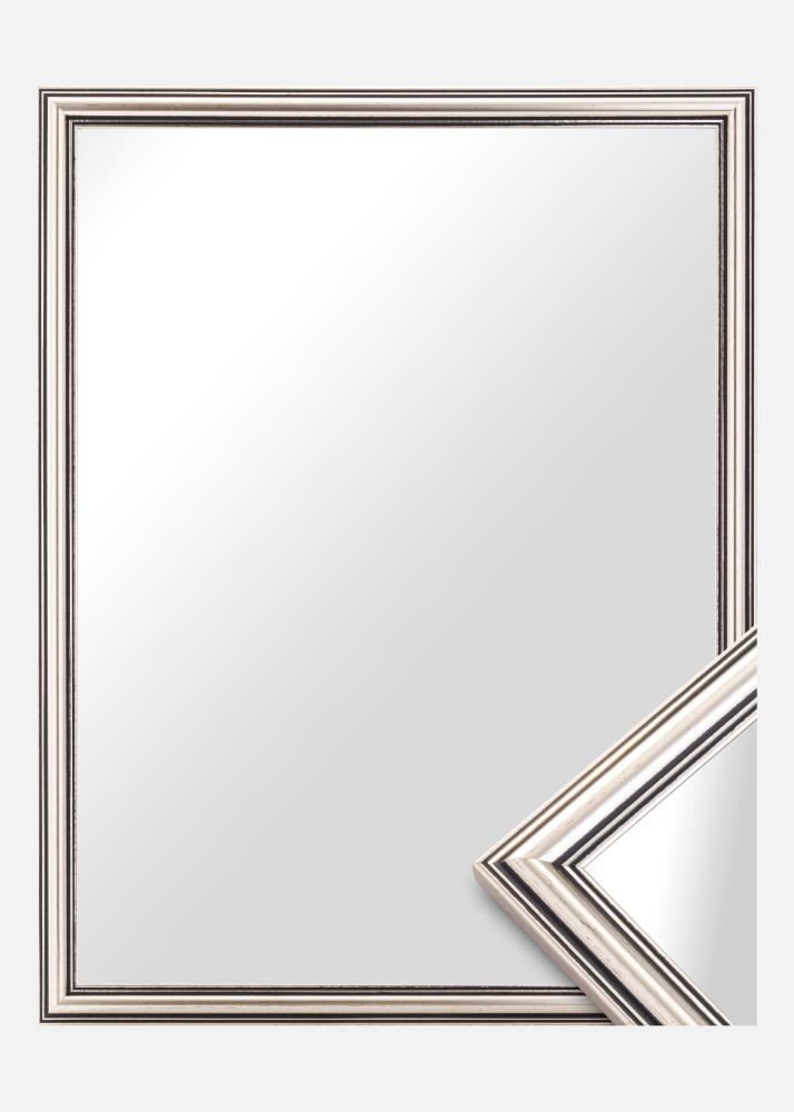 Ezüst színű lakberendezési elemek osztályt adnak otthonának! Itt van egy elegáns, méretre szabott tükör profilozott léccel. A tükör különösen szép fekete, ezüst és lila színekkel. Mivel méretre szabott, biztos lehet benne, hogy pontosan odaillik, ahova szeretné.
