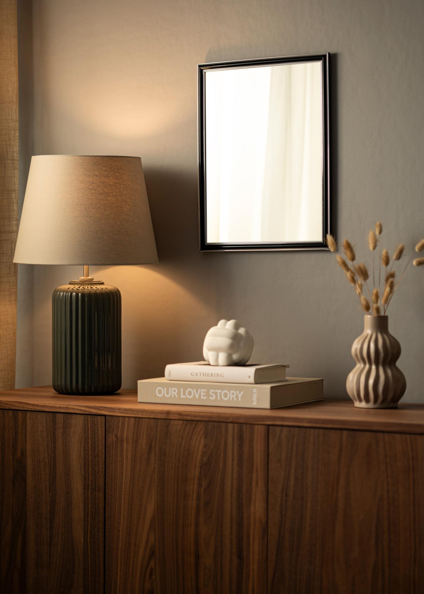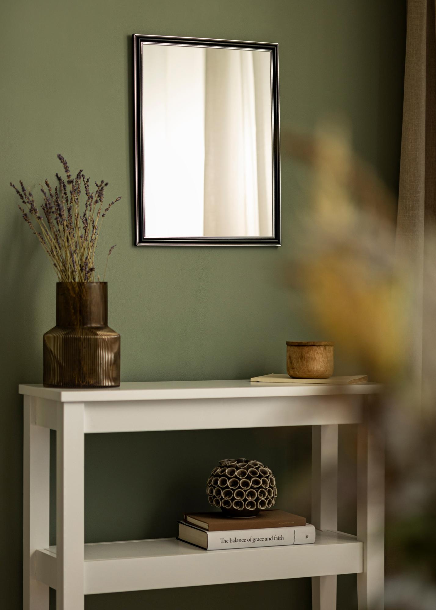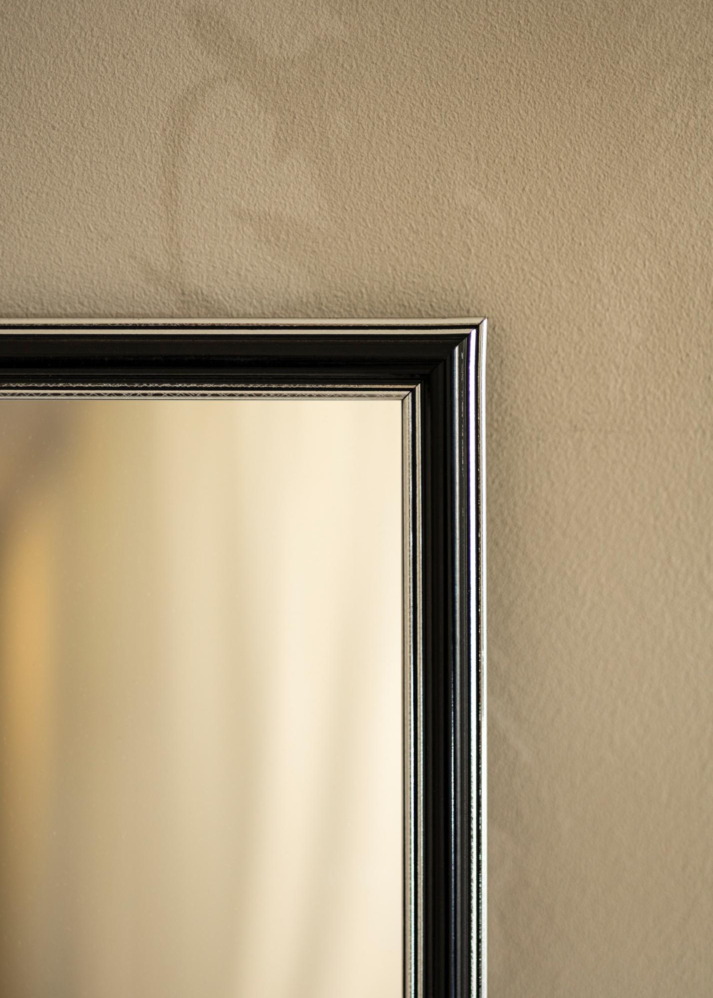 Szerezzen be egy stílusos tükröt, amely garantáltan odaillik, ahova szeretné! Ez a luxus tükör az Ön méreteinek megfelelően készül saját keretezőműhelyünkben. A fekete középrész ezüstszínű szélekkel a legkülső részen és az üveghez legközelebb férfias jelleget kölcsönöz. Könnyen illeszkedik más berendezésekhez, mint például ezüst, fekete, fehér és lila.