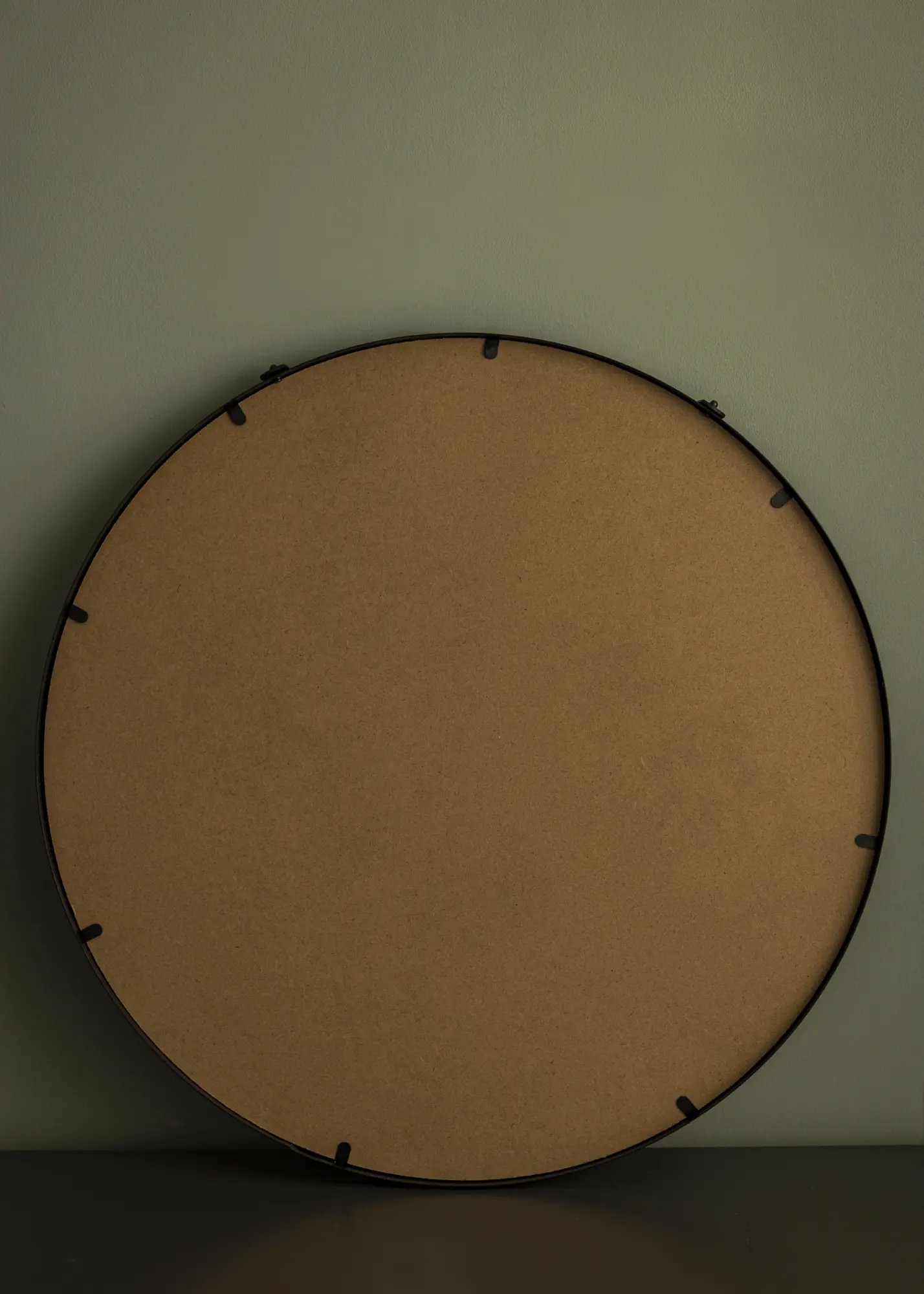 Ez a kerek tükör a dán House Nordic-tól származik, és két méretben kapható, amelyek közül ez a nagyobb változat 60 cm átmérőjű.