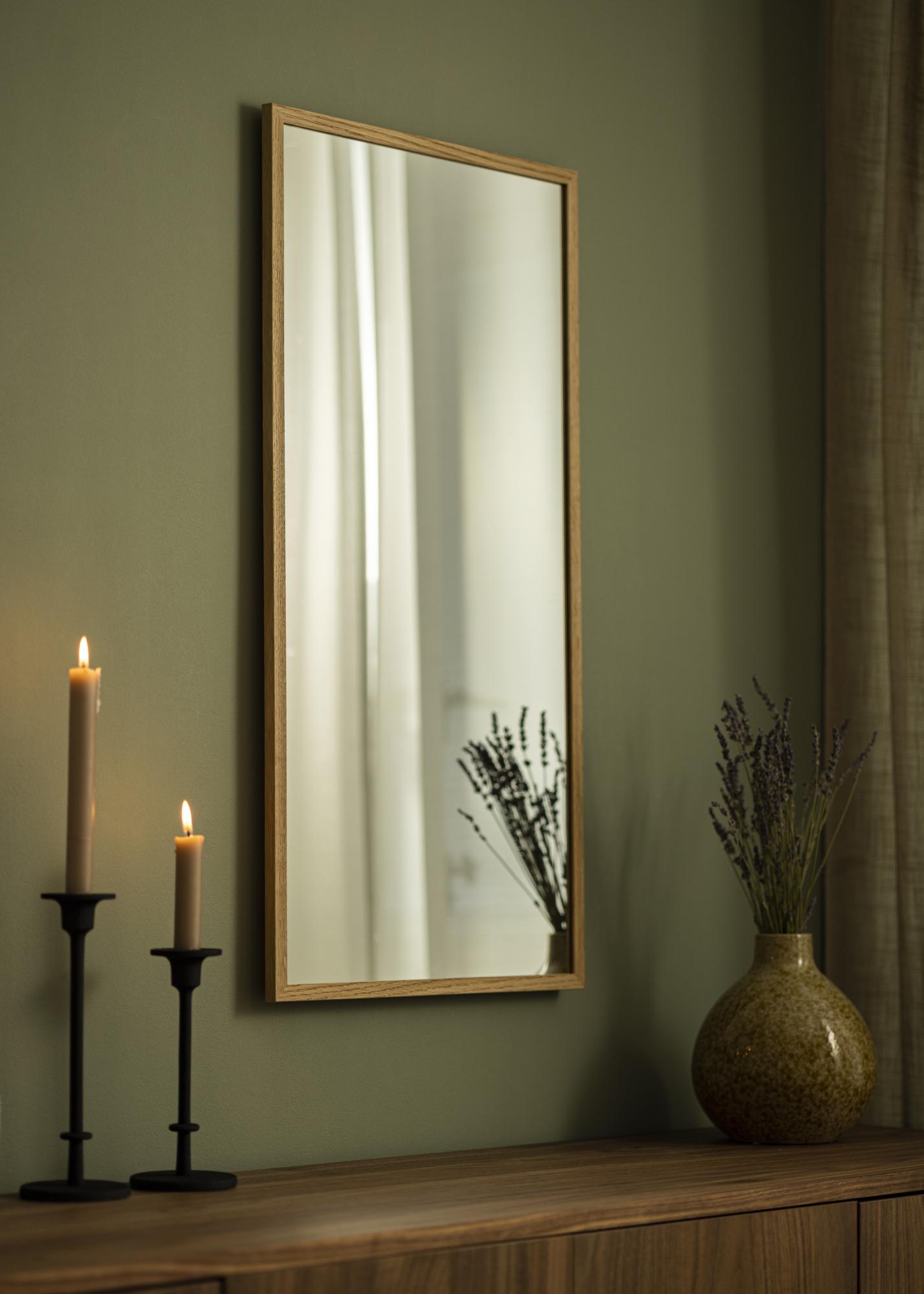 Ez a téglalap alakú tükör tömör tölgy keretbe van foglalva, amely meleg és organikus érzetet ad a berendezéséhez. A természetes fa keret nemcsak szép látványt nyújt, hanem tartós és időtlen dizájnt is biztosít, ami hosszú évekig kitart.