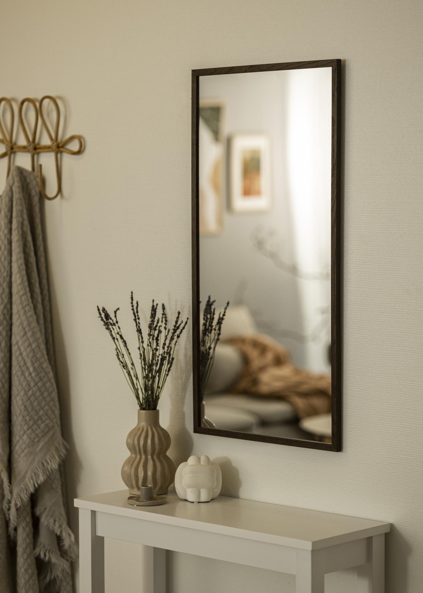 Fedezze fel a stílusos eleganciát téglalap alakú tükrünkkel, amely tökéletesen arra lett kialakítva, hogy klasszikus szépséggel gazdagítsa otthonát. Nagyvonalú, 46x86 cm-es méreteivel ez a tükör nemcsak praktikus, hanem dekoratív részlet is, amely magára vonja a tekintetet. Valódi tölgyfa vastag kerete mély sötét tölgy árnyalatú, amely azonnal robusztus eleganciát és időtlen varázst kölcsönöz bármelyik szobának.
