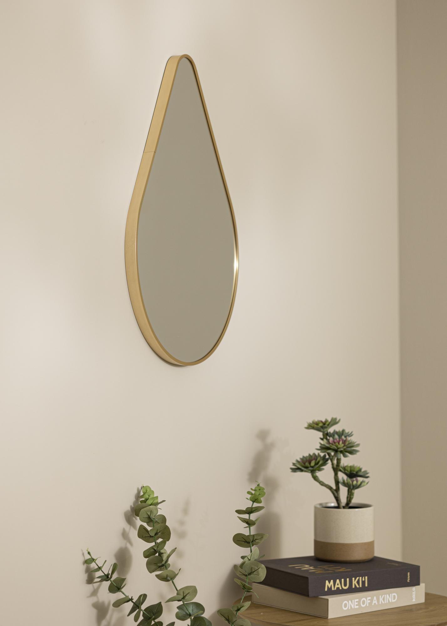 Ez egy falitükör modern aszimmetrikus dizájnnal, gyönyörű aranykerettel. Az aranyszínű fémkeret mélysége 28 mm, ami lehetővé teszi, hogy kissé kiemelkedjen a falból. A keret erőteljesebb megjelenése kiváló eleme lehet egy trendi tükörfalnak, más vékonyabb kivitelezésű tükrökkel együtt. Természetesen kiválóan alkalmas arra is, hogy önállóan függessze fel a falra!