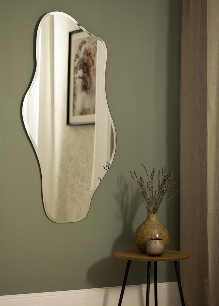 Fedezze fel a tükröt, amely a funkcionalitást egyedi esztétikával ötvözi – egy tükröt, amely nemcsak a képedet tükrözi vissza, hanem a stílusérzékedet is. Az 55x110 cm-es méretekkel rendelkező tükör praktikus és elegáns lakberendezési részlet az otthonod számára. A dizájn elegáns és áramló, jellegzetes organikus formával, amit a kifinomult fazettált él hangsúlyoz, mely bármely helyiségnek emelést ad.