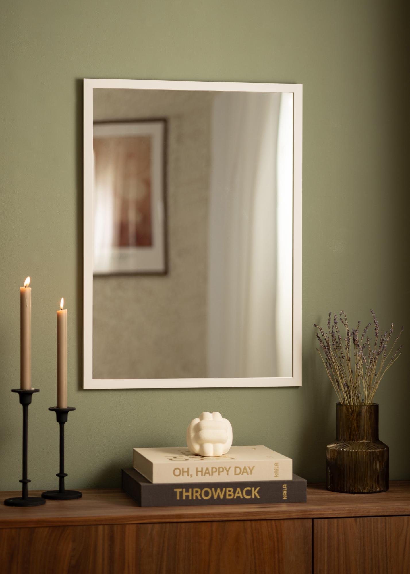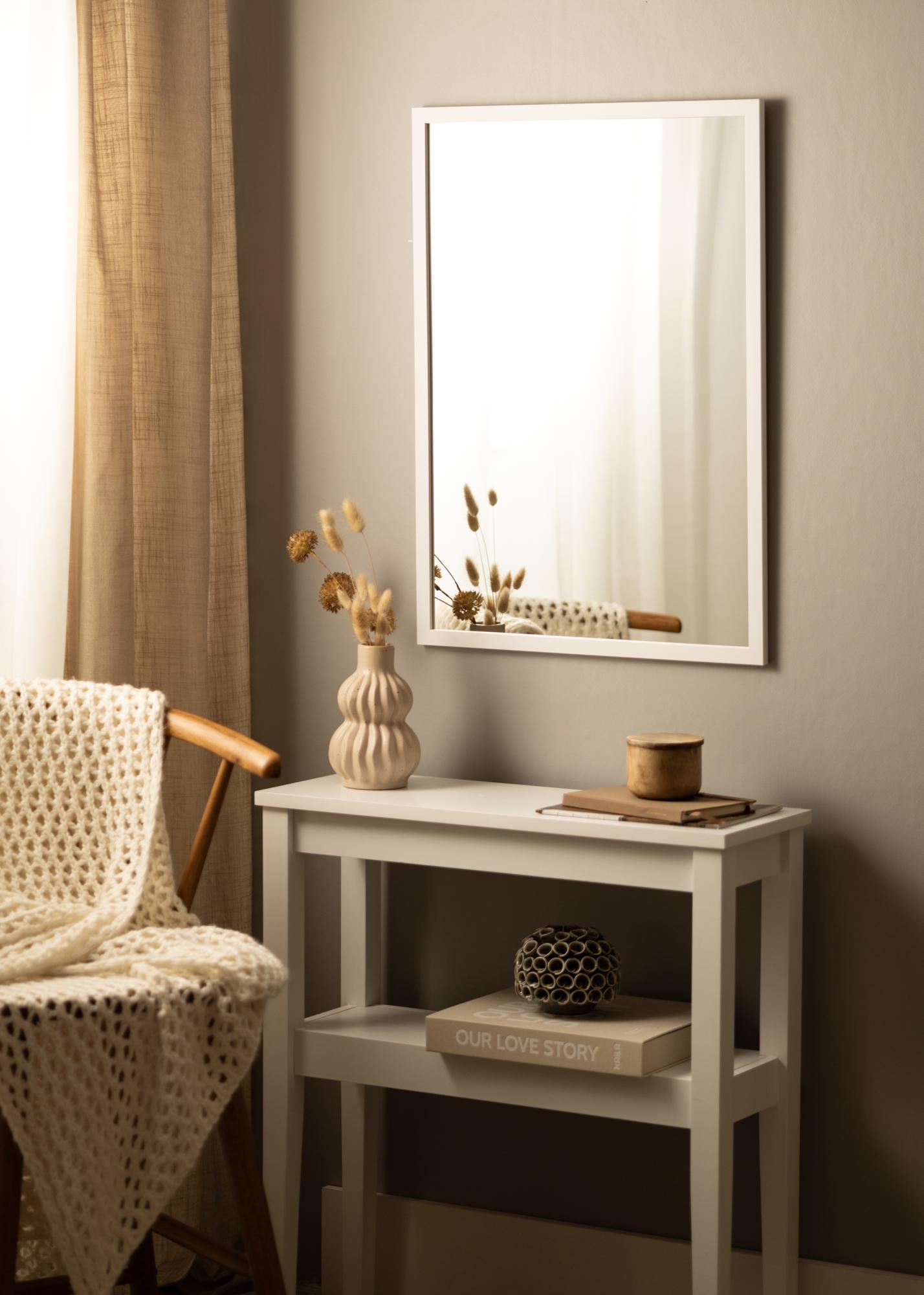 Ez a tükör klasszikus megjelenésű, fehér festett fa kerettel, amely 22 mm széles és 15 mm mély. A hagyományos megjelenést a tükör színtelen tükörüvege is erősíti.