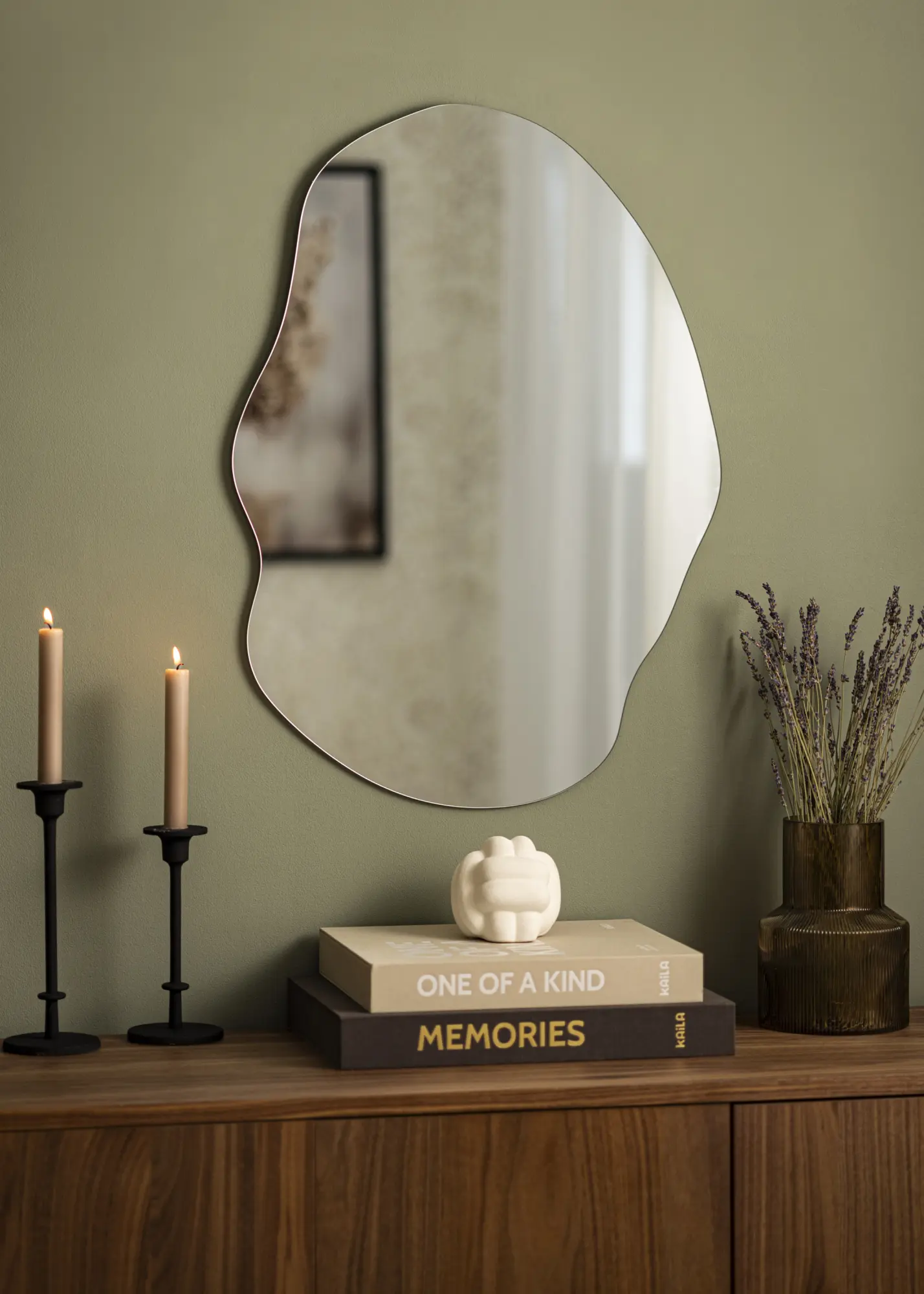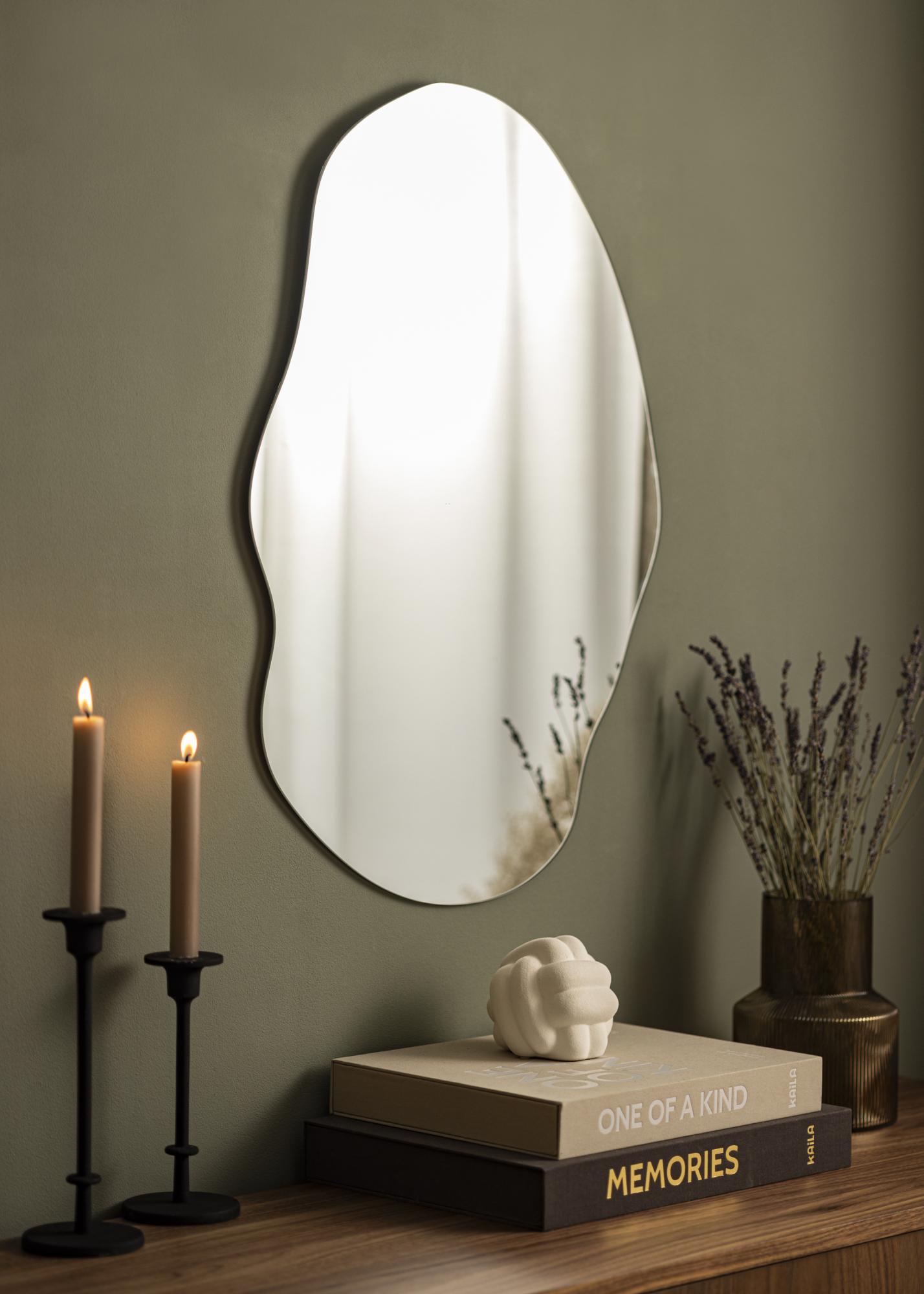 Van sok klasszikus formája a belső térben, mint például négyzet alakú asztalok vagy kerek szőnyegek? Akkor egy eltérő formájú tükör nagyszerű kiegészítő lehet, hogy több dinamikát teremtsen a helyiségben. A Wide Cloud egy 50x70 cm-es fali tükör, amely felhő ihlette kialakítással rendelkezik. A gyönyörűen hullámzó forma rendkívül elegáns, és a tükör vékony tükörüvegje még inkább fokozza a stílusos érzést.