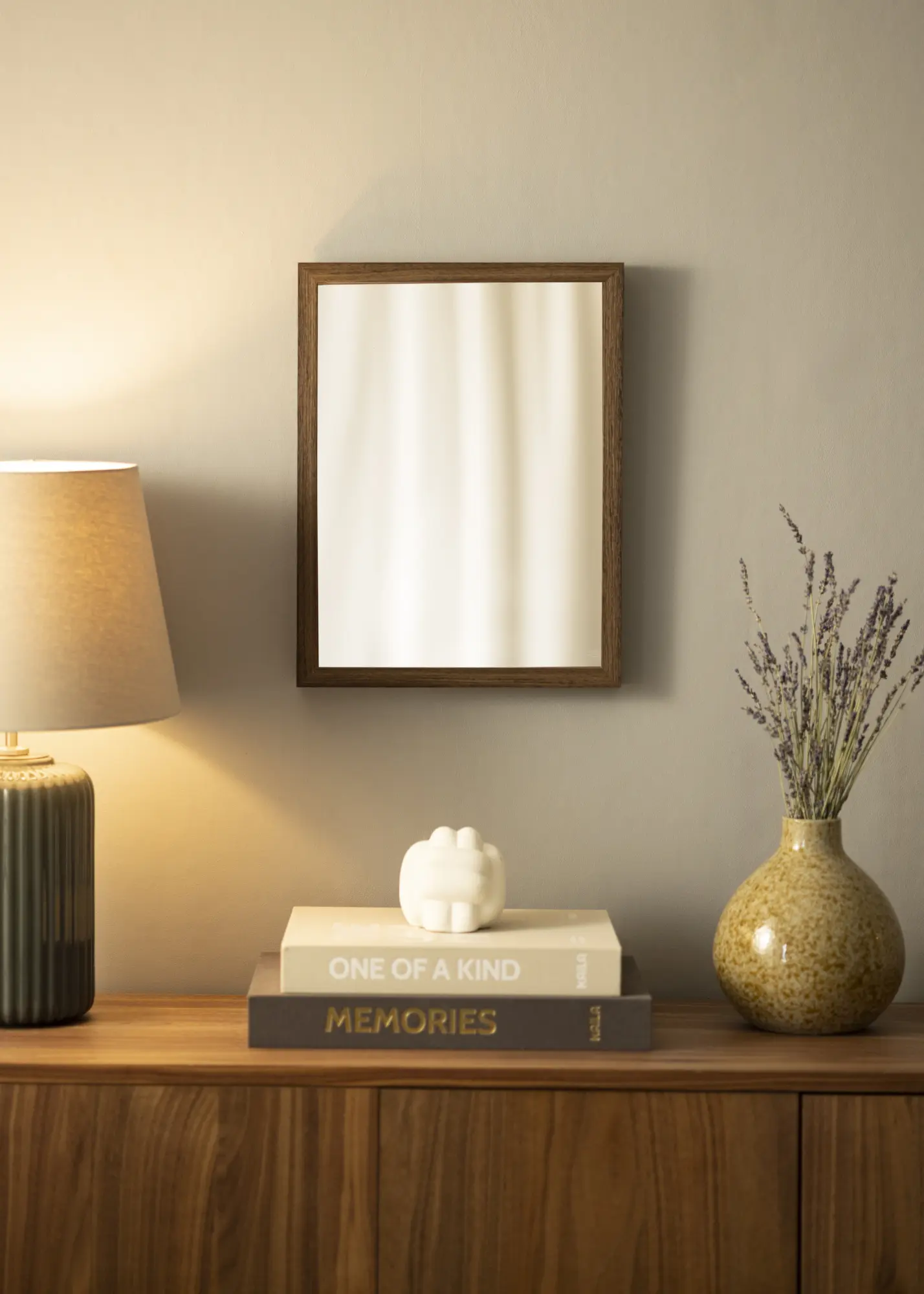 A tükör kerete 21 mm széles és 38 mm mély, amely stabil és robusztus érzést nyújt anélkül, hogy kompromisszumot kötne az elegáns dizájnnal. Az egyenes élek és a keskeny profil hozzájárul a modern és stílusos megjelenéshez, amely mind a klasszikus, mind a modern belső terekhez illik.